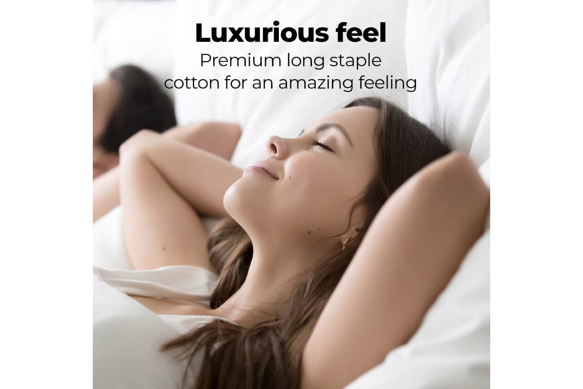 Stretch out on your bed and feel the delicate sheen of the Royal Comfort Kensington 1200TC 100% Cotton Stripe Bed Sheet Set – King against your skin. A decadently high 1200 thread count, combined with the high-quality long-staple cotton in a sateen weave, creates a beautiful bedroom environment that you don’t want to leave in the morning. 100% cotton sheets are breathable and the fibre wicks moisture away from your skin.