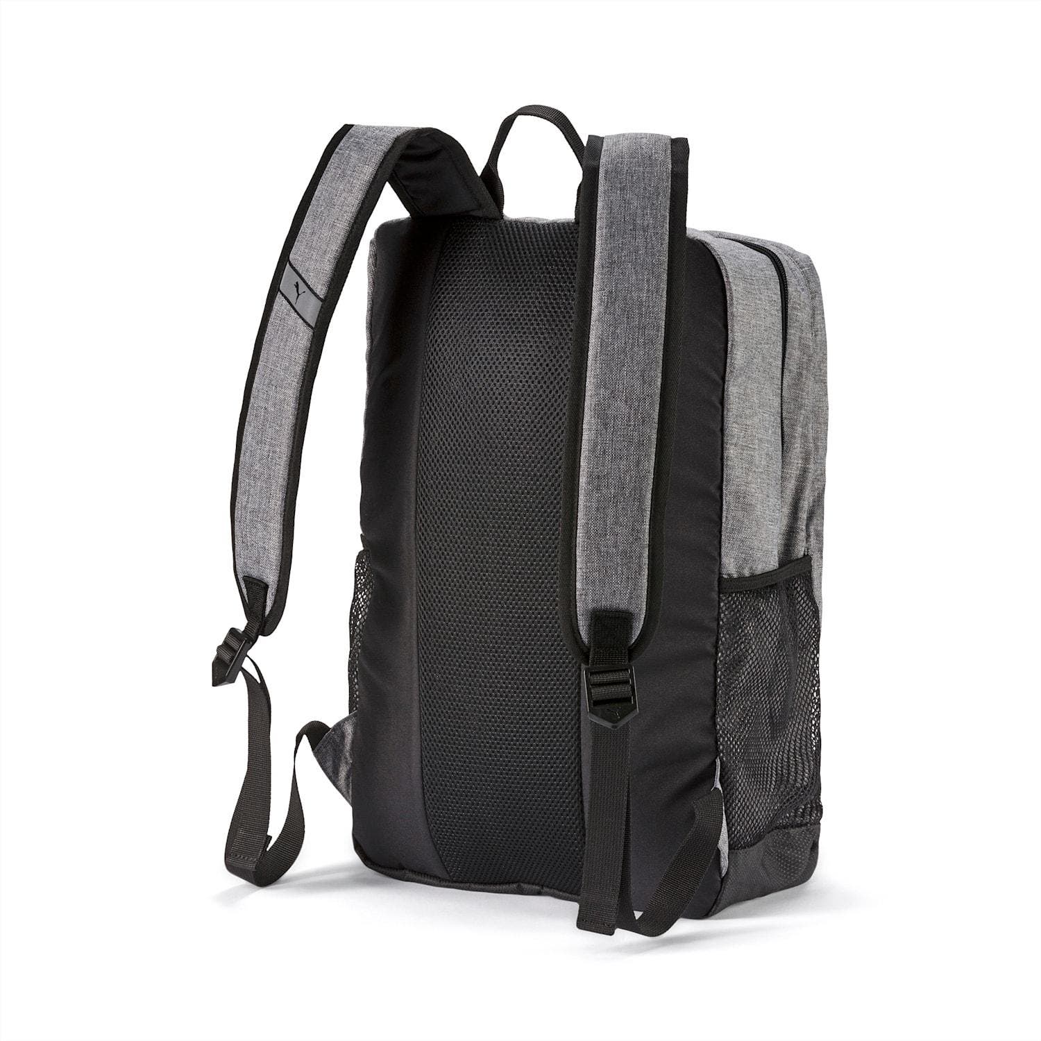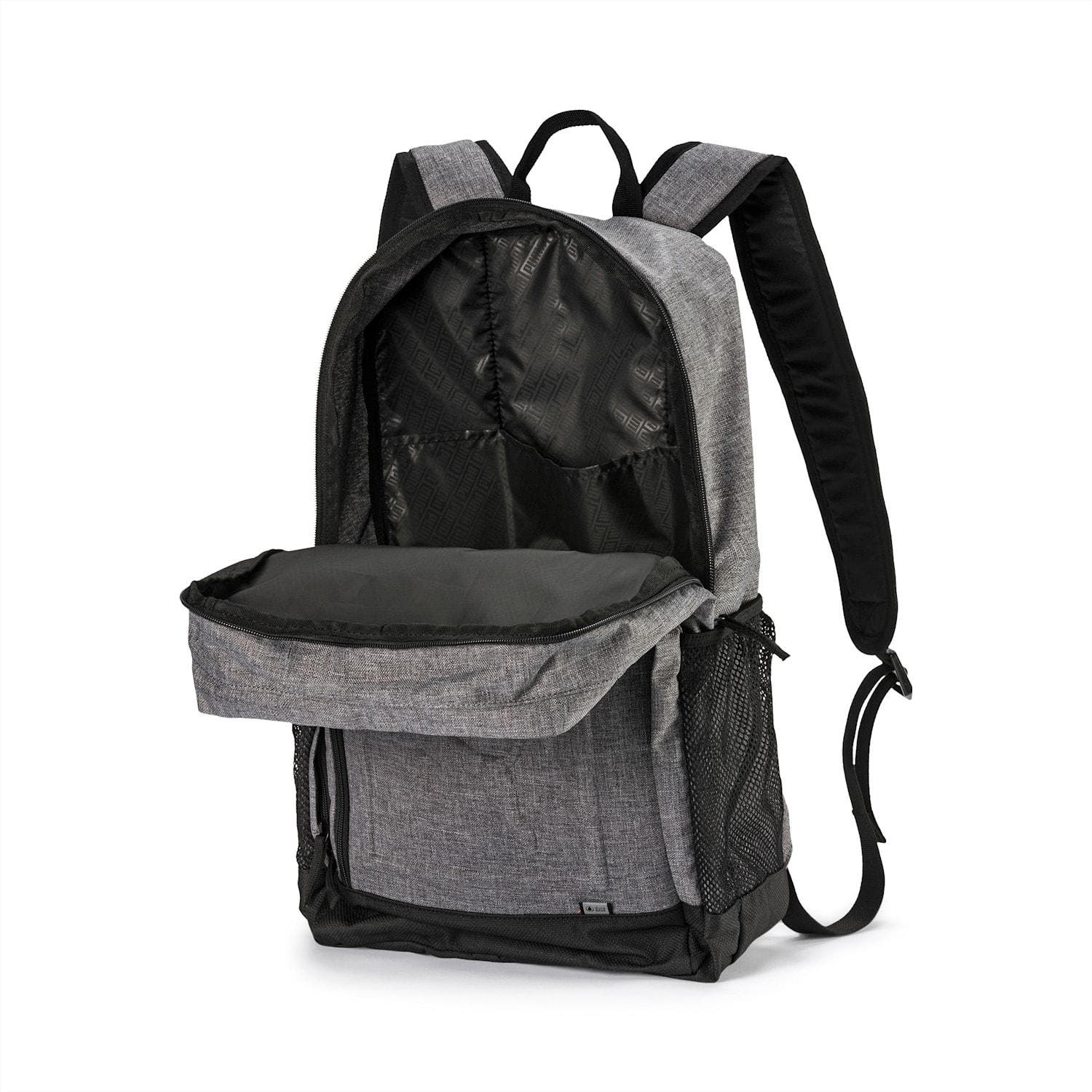 A two-way zip opens the largest of them, which houses a sleeve for laptops, while a front pocket and 2 mesh pouches line the bag’s exterior. The PUMA S Backpack’s straps are adjustable and padded and the bottom is covered in sturdy Durabase material.