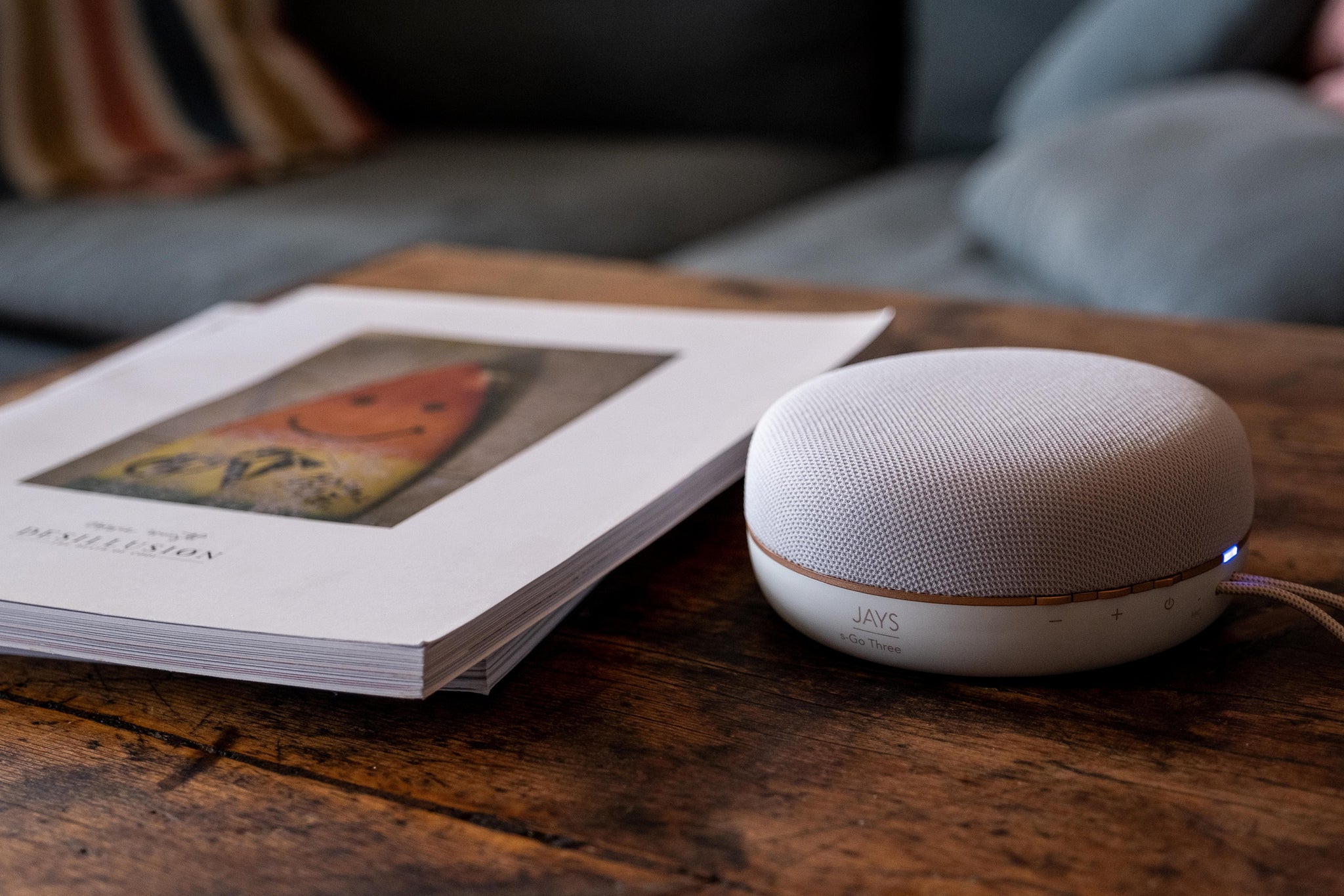 With its cylindrical design, enjoy 360° sound that spreads evenly, filling any room with deep, consistent audio in all directions. Beneath its minimal design and soft textile cover lies a 2-way speaker system controlled by an integrated class D amplifier, delivering JAYS’ signature balanced and full-bodied sound.