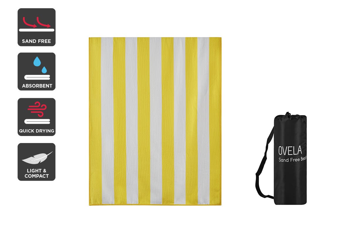 NNEKGE Sand Free Beach Towel (Yellow 200 x 80cm)