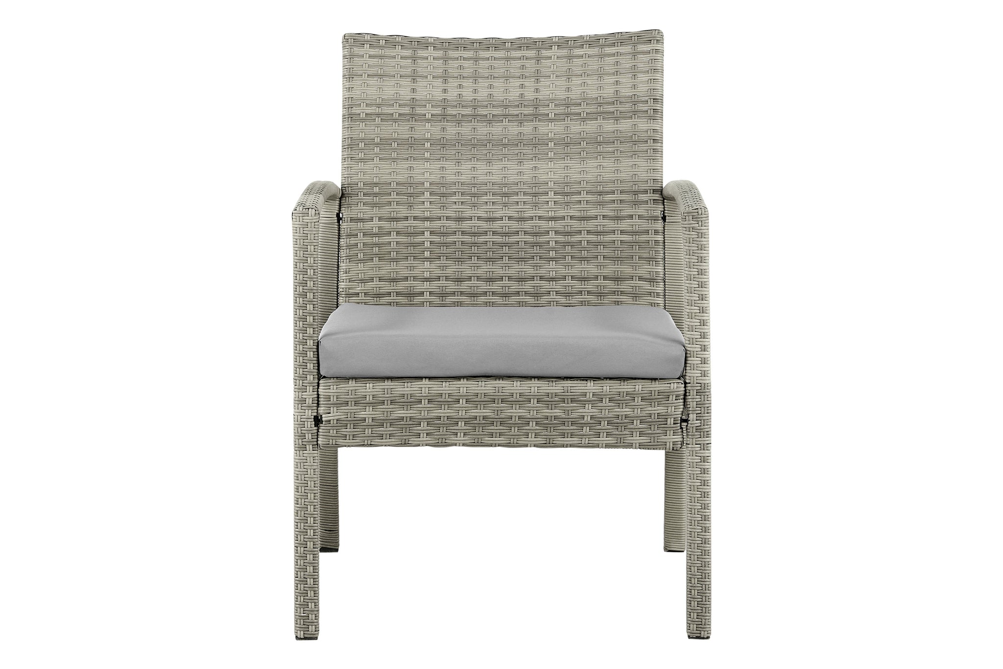 Made with weather-resistant materials including durable zinc-plated, powder-coated steel frames for a sleek finish, PU woven rattan, and polyester cushions, this outdoor furniture set withstands rain or shine and is easy to clean.