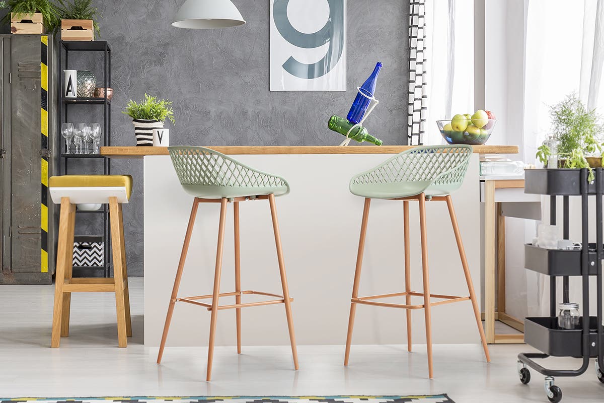 NNEKGE Set of 2 Leerdam Bar Stools (Pastel Green)