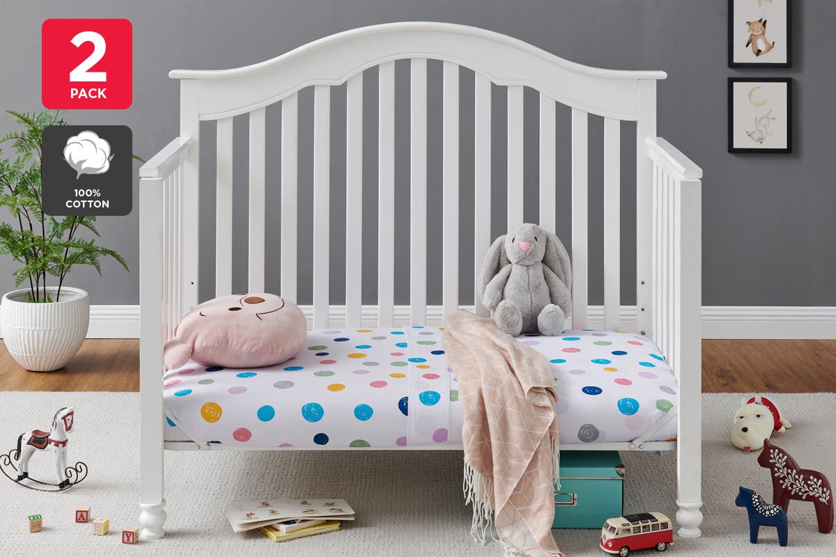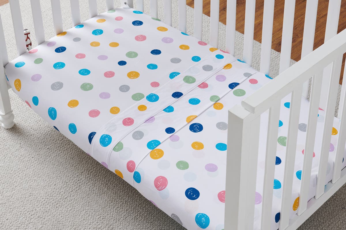 Add colour and comfort to the nursery with the Ovela Polka Dot Kids Cot Fitted Sheet 2 Pack (Cot) that’s a durable design made from pure cotton.
