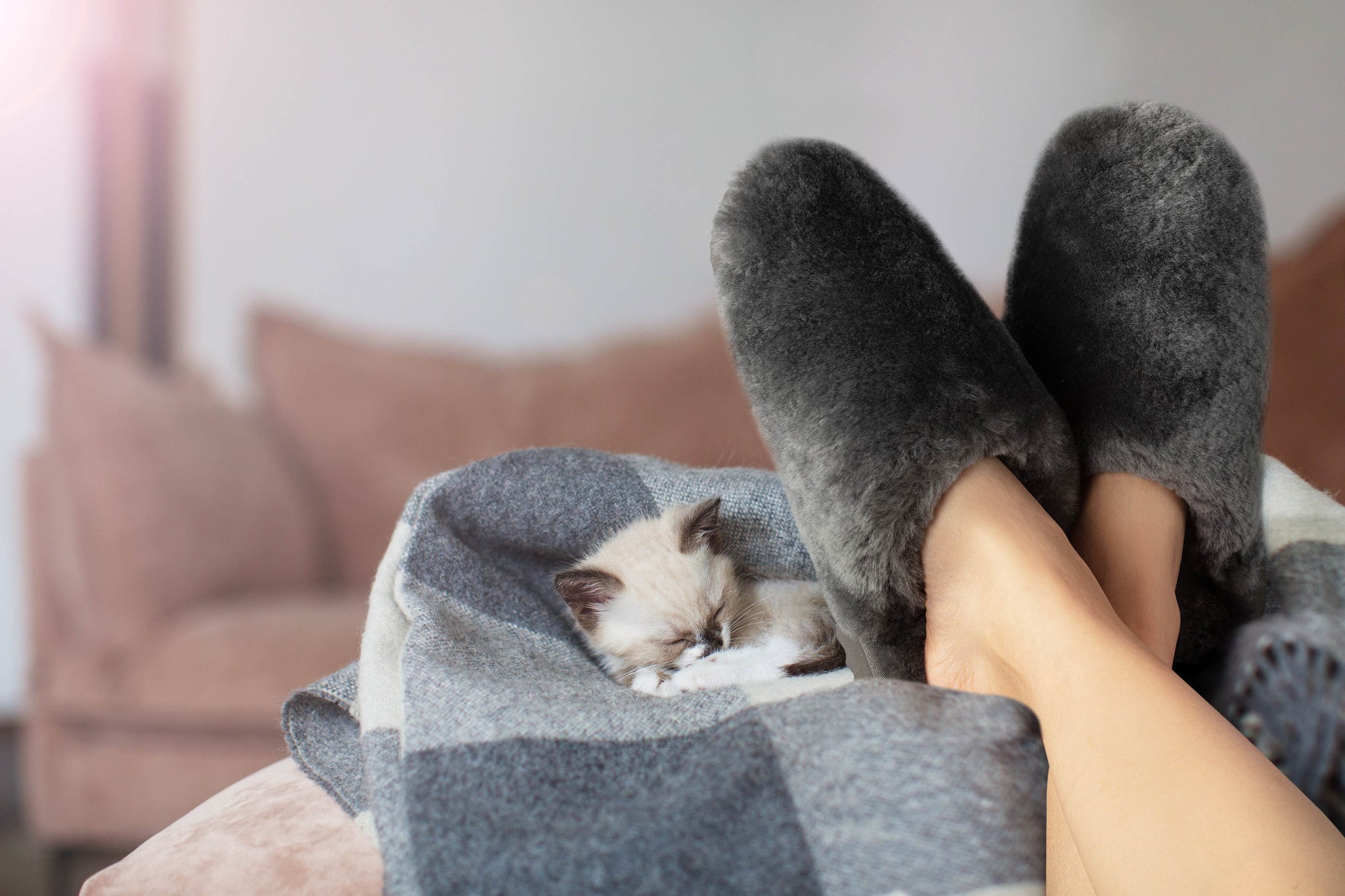 - Comfy shearling slip-on slippers