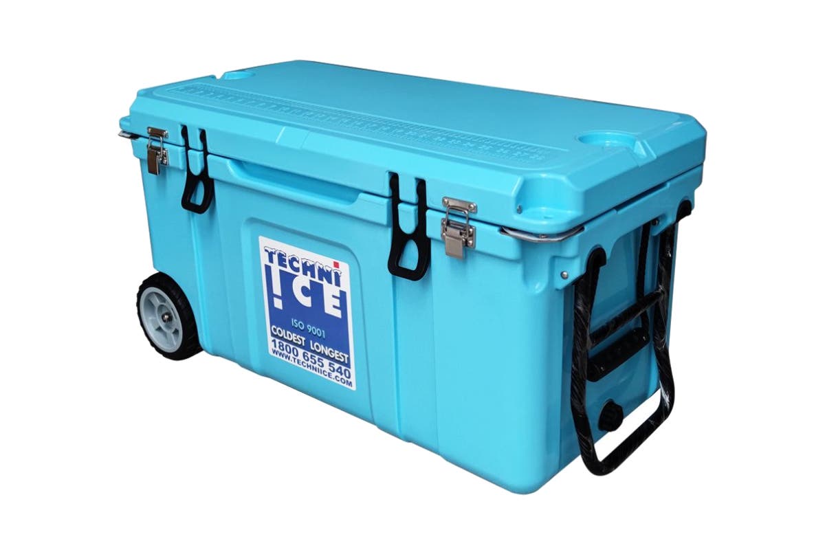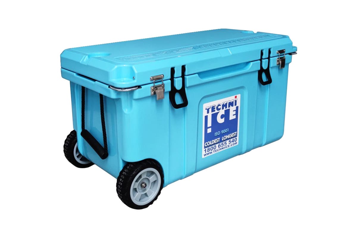 Featuring unique quad-latch system, recessed fridge seal, rope handles, heavy duty wheels and rubber feet, the Techni Ice Signature Hardcore Series Premium Ice Box is perfect for vacation.