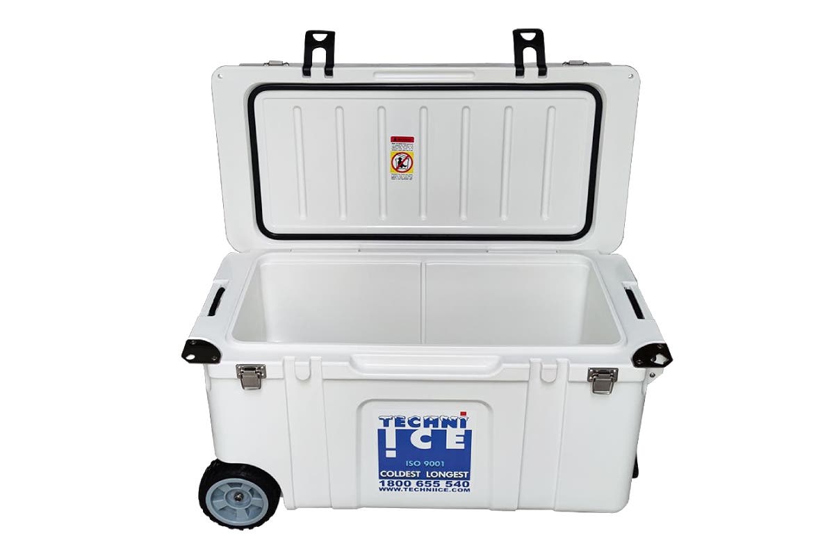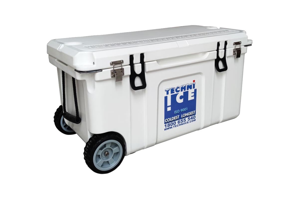 Featuring unique quad-latch system, recessed fridge seal, rope handles, heavy duty wheels and rubber feet, the Techni Ice Signature Hardcore Series Premium Ice Box is perfect for vacation.