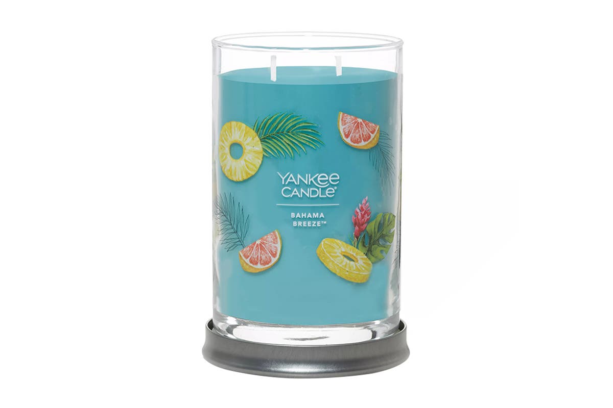 The Yankee Signature Large 2-Wick Tumbler – Bahama Breeze delivers a fruity fragrance. There’s cool summer refreshment in this tropical blend of pineapple, grapefruit and mango.