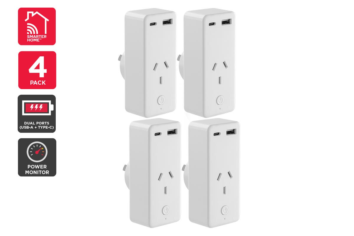 NNEKG Smart Plug With Energy Meter & 5V 2A USB A&C Ports (4 Pack)