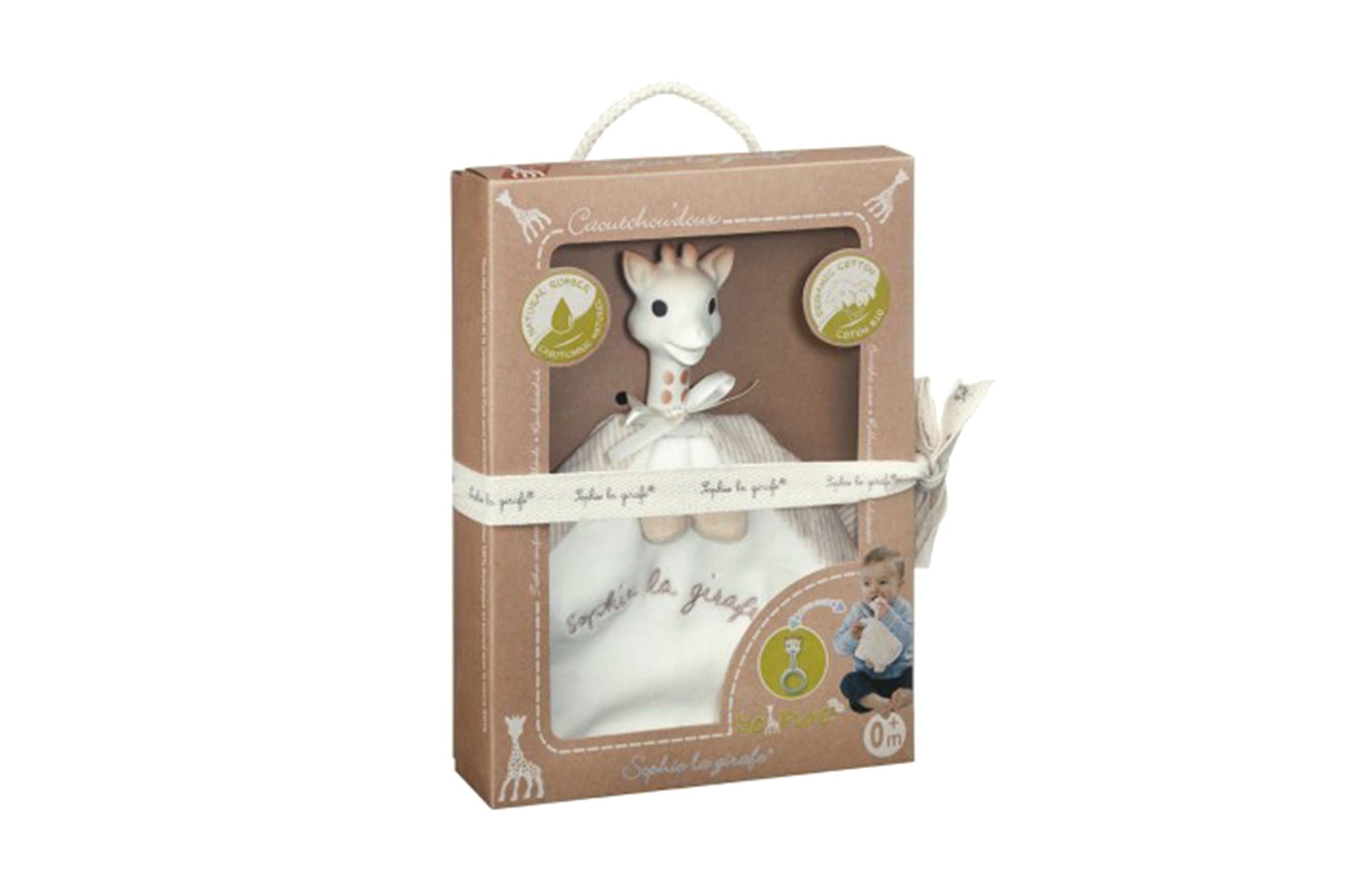 The Sophie La Girafe So Pure Teething Comforter consists of a super-soft comforter and a Sophie the Girafe Ring Teether. The ring teether cleverly fits through the centre of the comforter to provide little ones with two textures to discover.