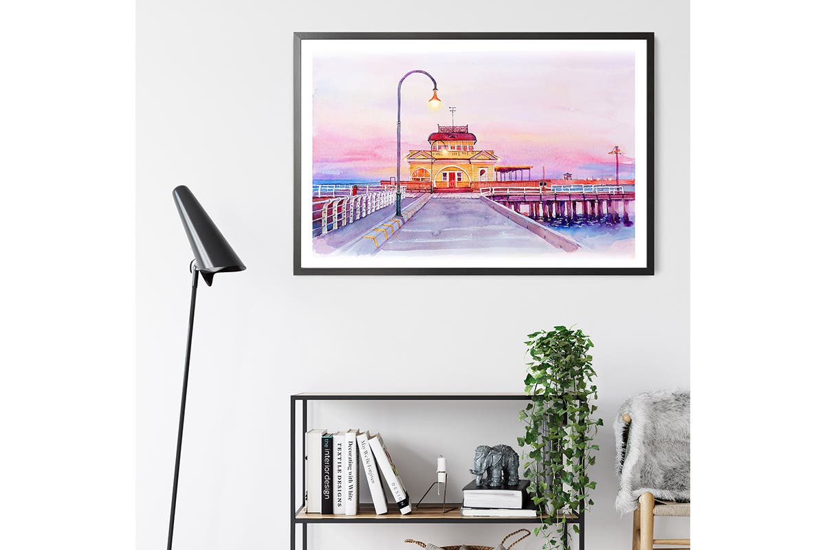 The St Kilda Pier Watercolour Painting Melbourne Art B1 Black Frame makes your space elegant, attractive and authentic. This ready to hang, quality framework is made from pine wood and flat-edged.