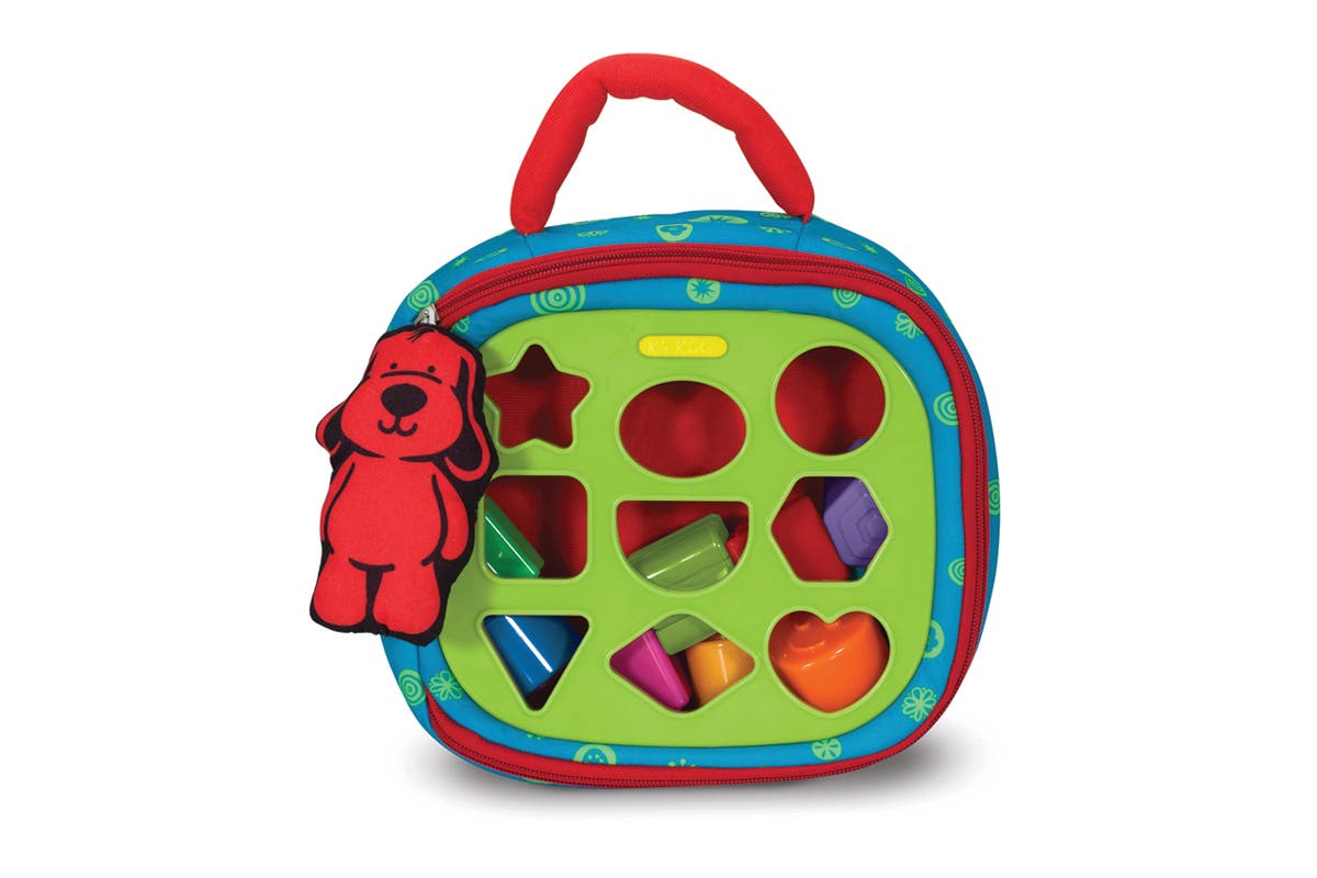 The Melissa & Doug – Take-Along Shape Sorter includes baby- and toddler-friendly games and learning activities that are great for enjoying together or for independent play and are sure to keep little ones giggling while they learn. Using nine plastic shapes and the padded carrying case, children can lift crinkly flaps, identify the pictures, match the shapes and drop the textured blocks through the sorter and then pull the plush dog around the edge to unzip the case and start it all again! The easy-to-grasp padded handle makes it easy to carry the whole set from place to place – even for crawlers, scooters and emerging walkers.