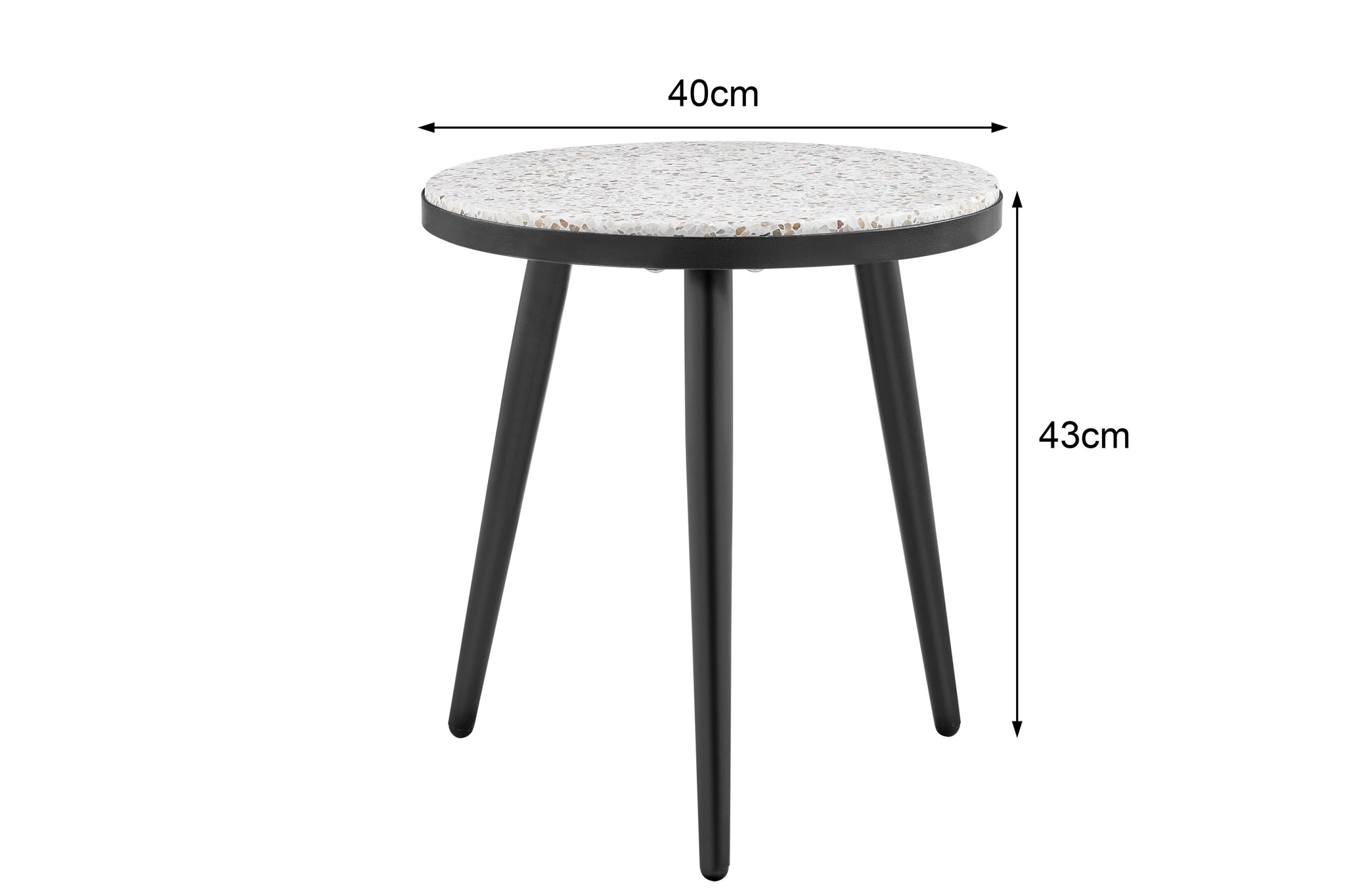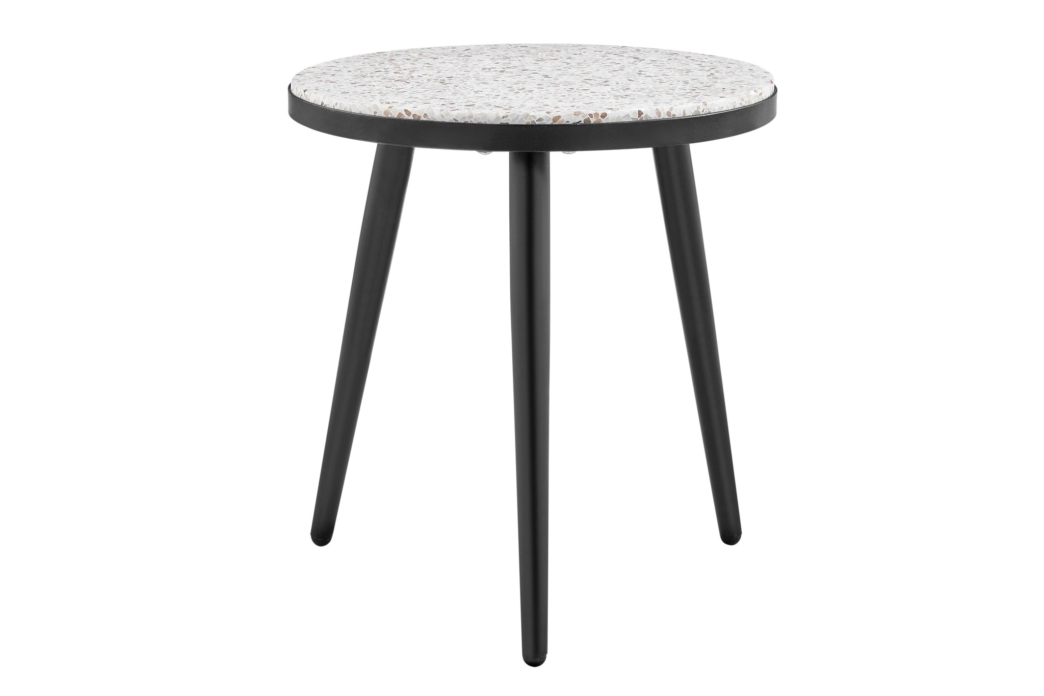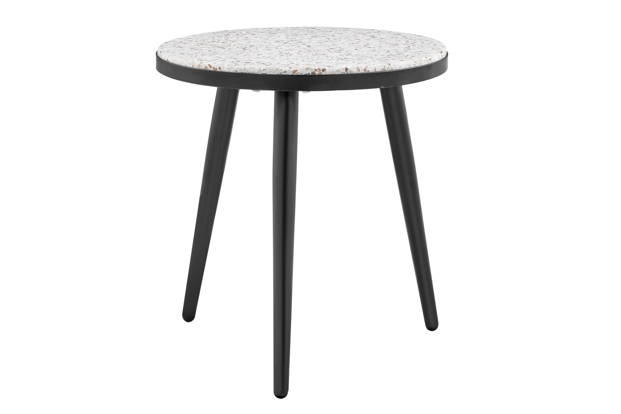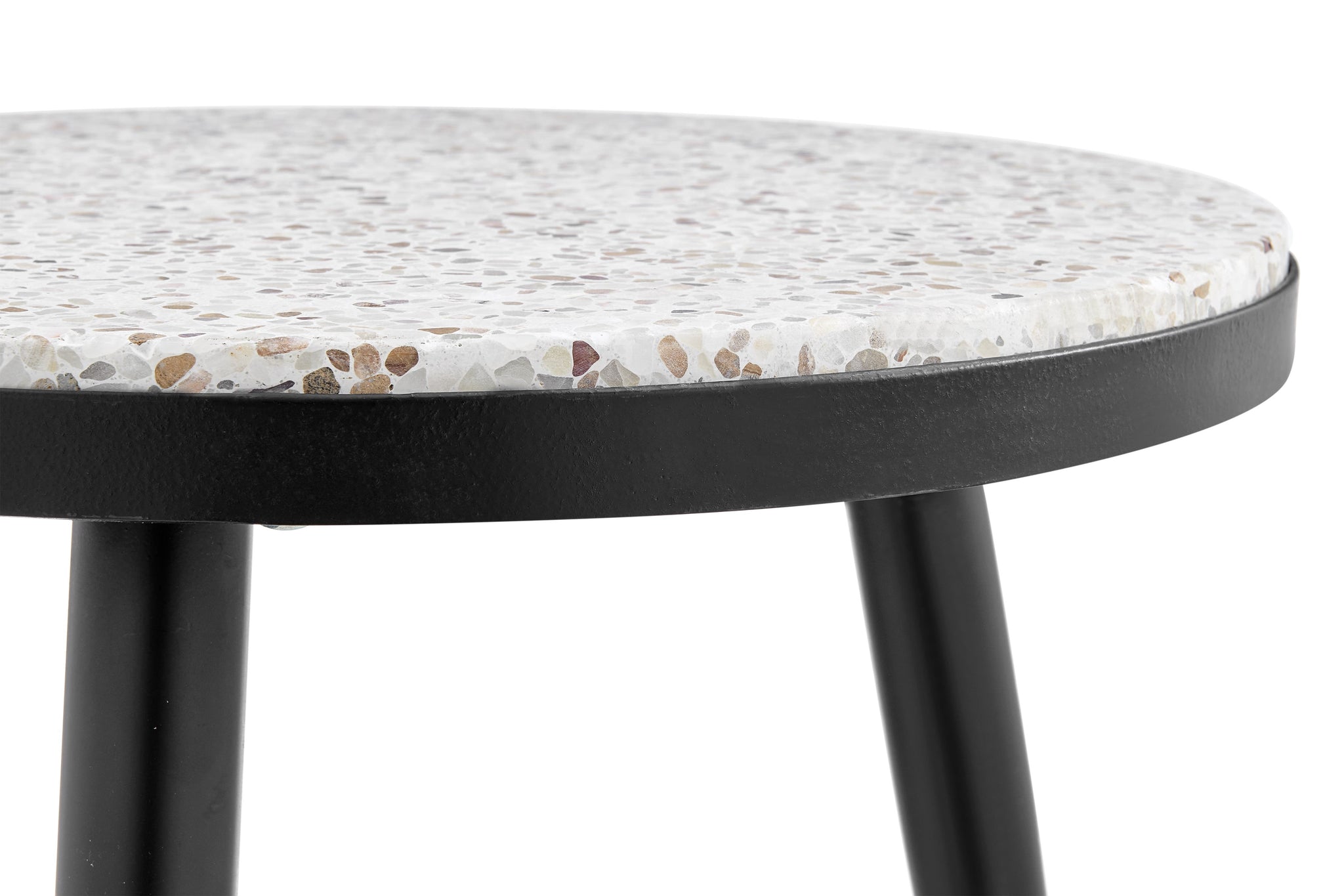 Created with stable powder-coated iron legs and a thick terrazzo tabletop, this terrazzo side table will be a reliable and enduring part of your lounge for years to come.
