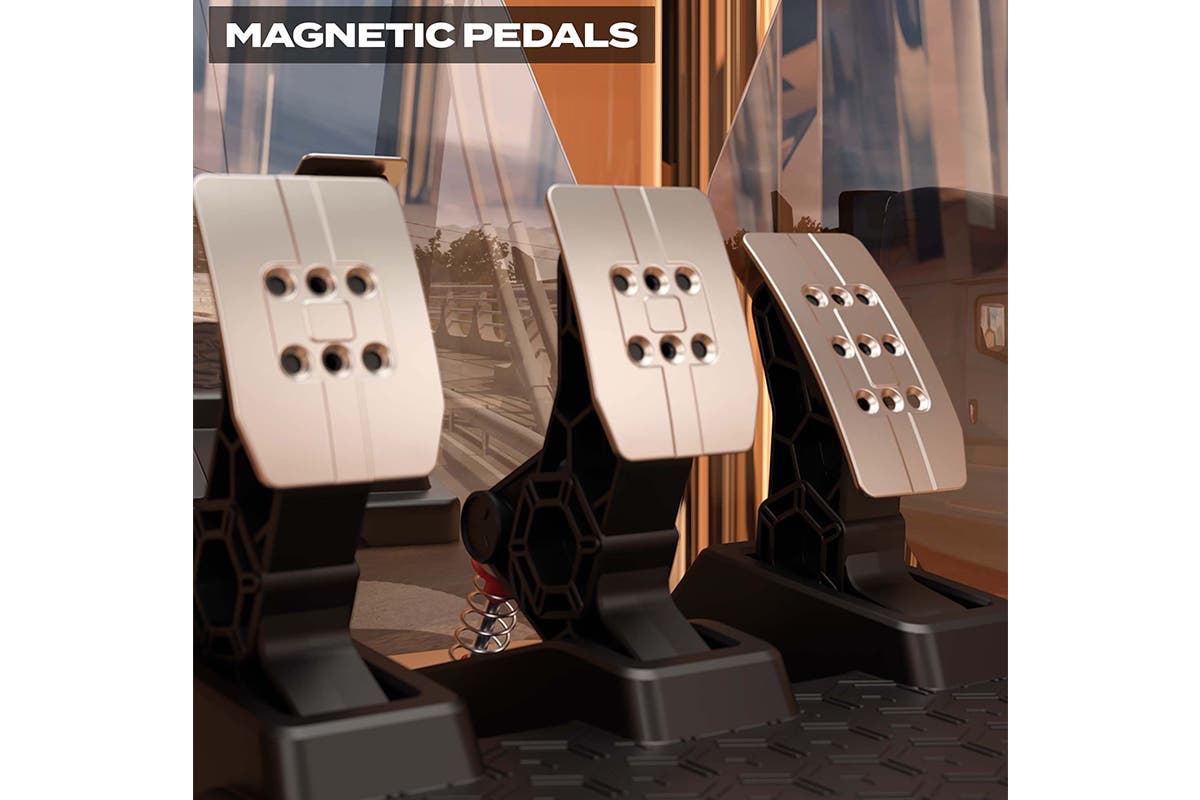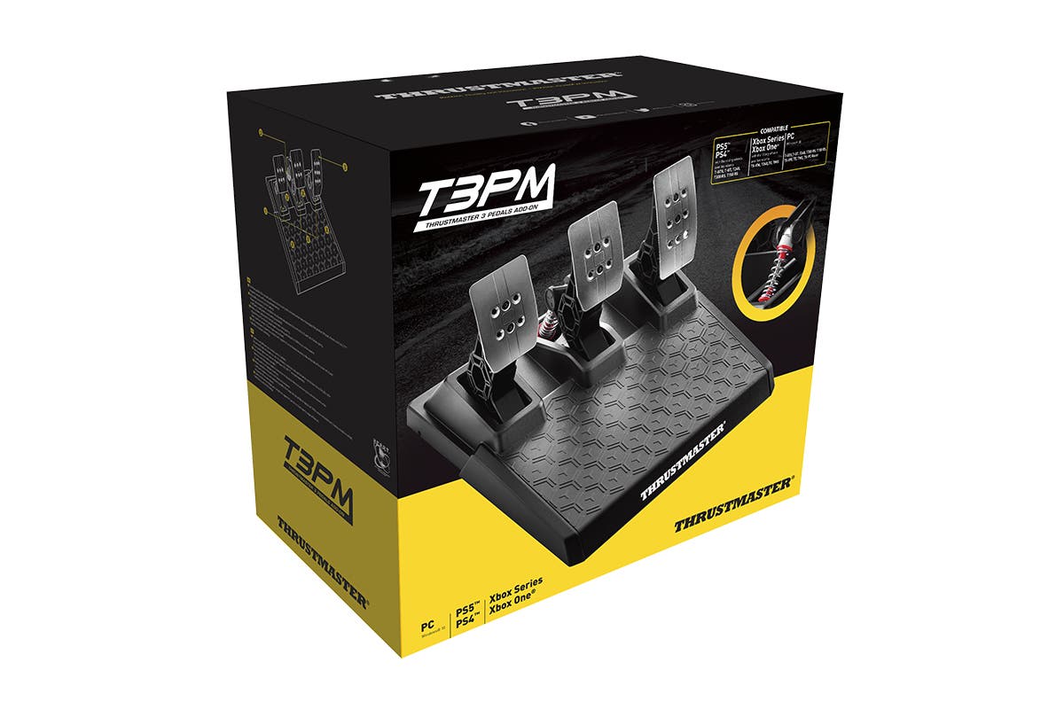 The Thrustmaster T3PM Magnetic Pedal Set easily adapts to your setup (table/desk, stand or cockpit). T3PM reads the position of each pedal smoothly and with linearity. Contactless technology avoids wear-and-tear and maintains an extremely accurate reading of values over time.
