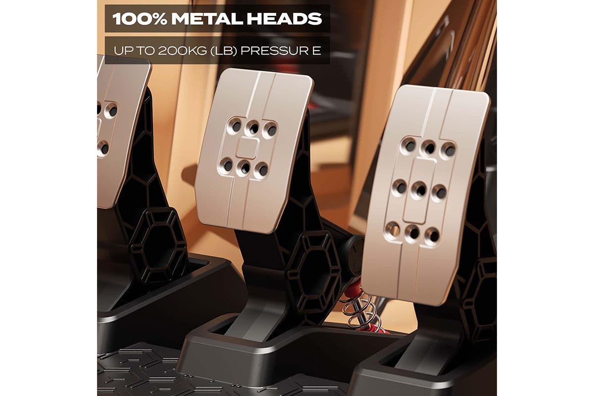 Contactless technology built into all 3 pedals for smooth, linear motion – H.E.A.R.T (HallEffect AccuRate Technology) magnetic sensors without any potentiometers, for extreme precision and an unlimited lifespan.