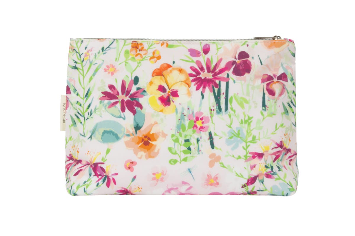Printed in the pretty ‘Morning Bloom’ design, the TONIC Large Cosmetic Bag fits nicely into your handbag or carryon luggage. This cosmetic bag is a great everyday size for your cosmetics, toiletries, personal hygiene, makeup, pens and pencils and medication.