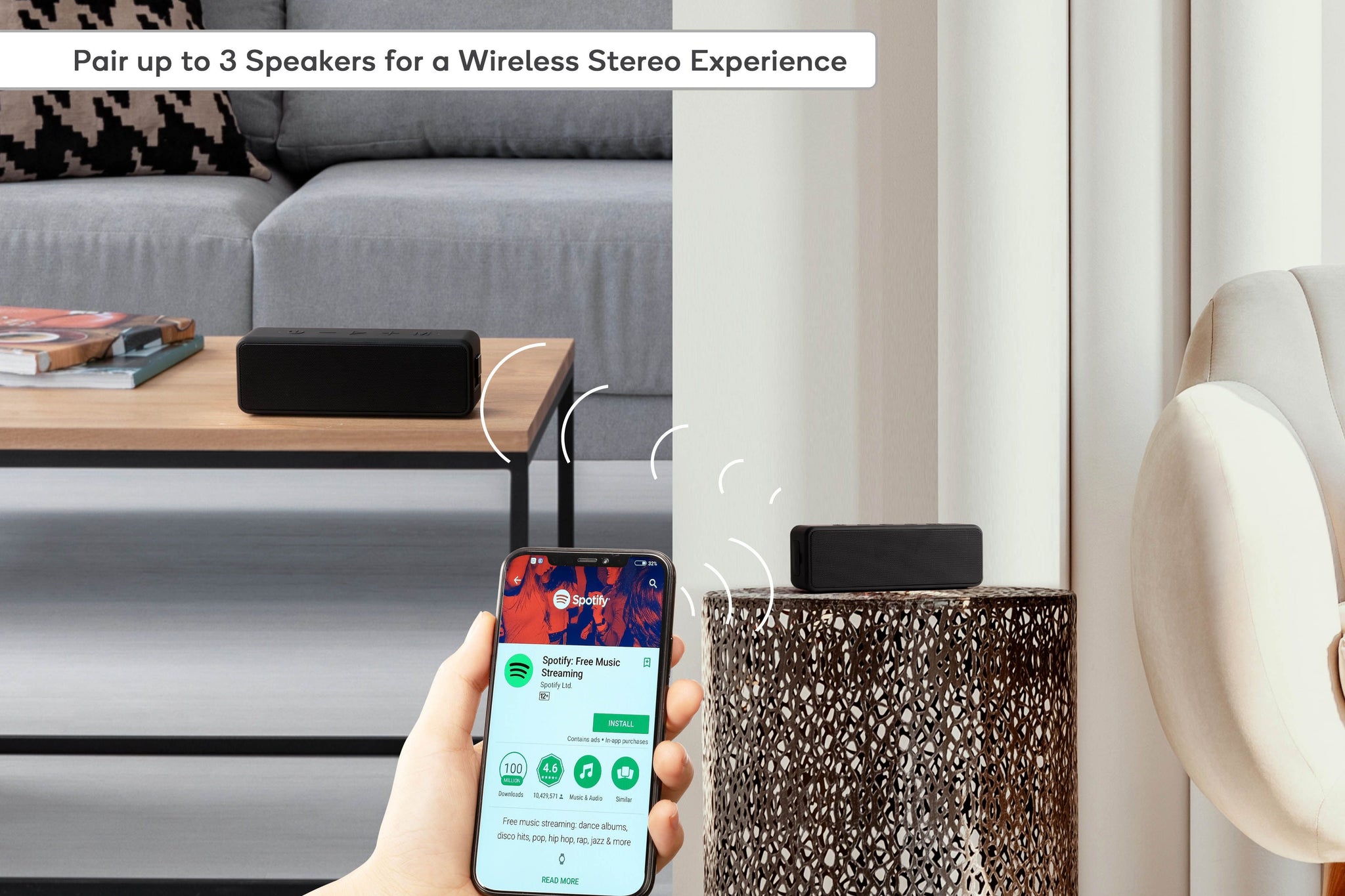 Pair the speaker with another, via Bluetooth, to achieve True Wireless Stereo that doubles the sound and creates a surround sound experience.