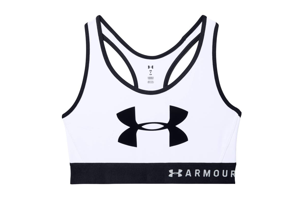 NNEKG Under Armour Womens Armour Mid Keyhole Graphic Bra (White White Black Size XS)