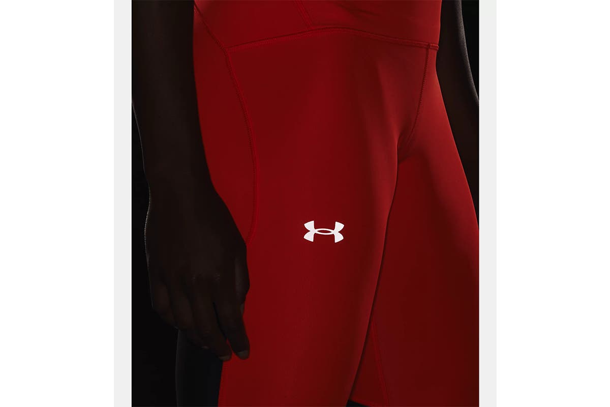 NNEKG Under Armour Womens Fly Fast Speed Capri Tights (Phoenix Fire Jet Grey Reflective Size S)
