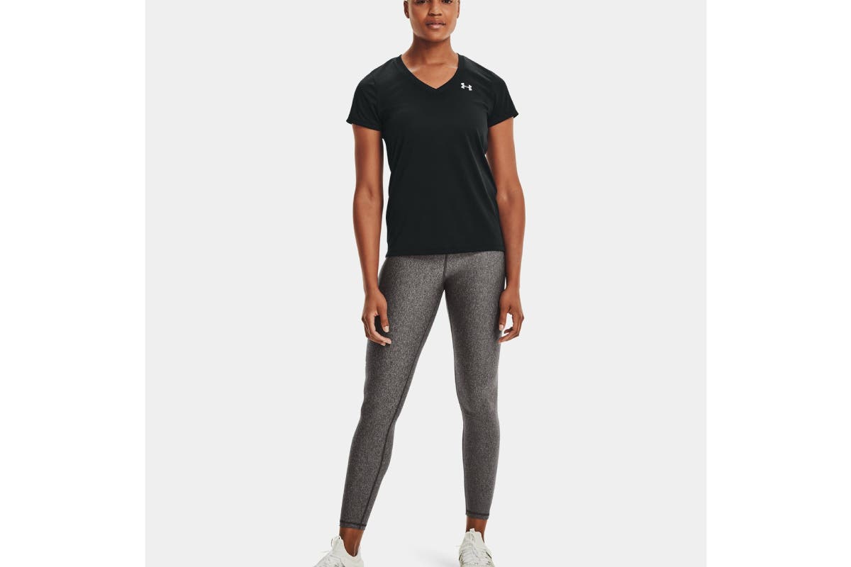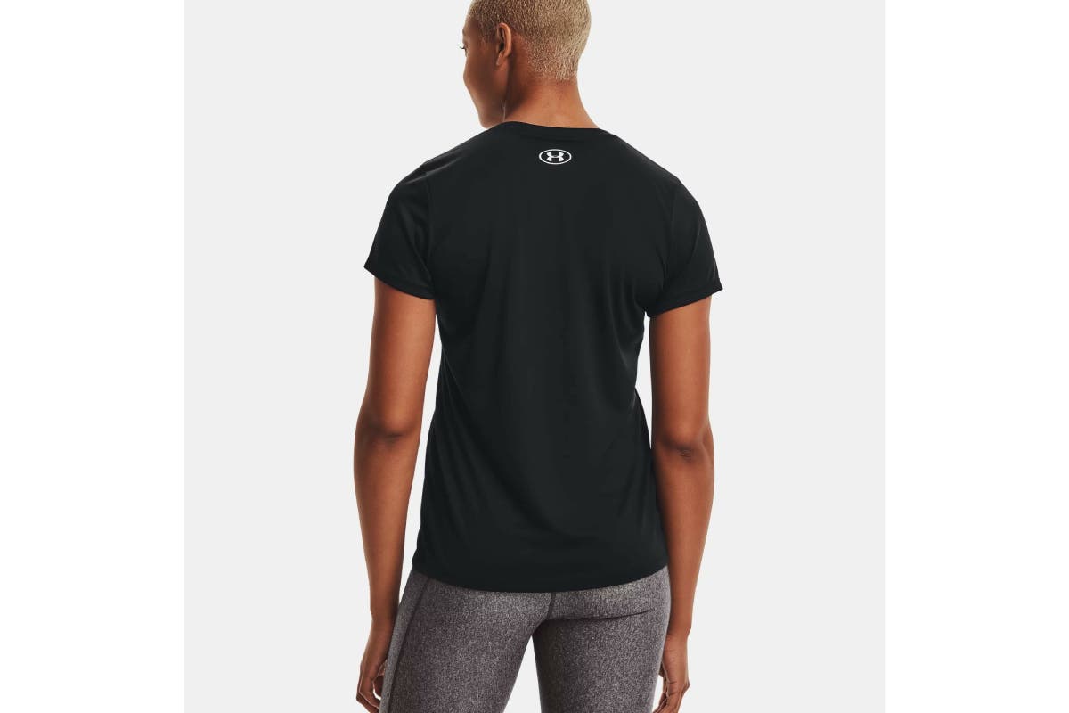 The Under Armour Women’s Tech Short Sleeve V Neck Solid Tee is the original go-to training gear. Its UA Tech fabric is quick-drying, ultra-soft and has a more natural feel.