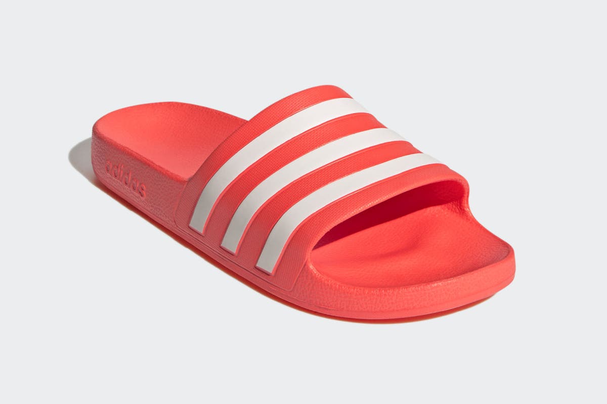 Rinse off after the pool in Adidas Unisex Adilette Aqua Slides. Keeping it simple, the smooth slip-ons reveal their Adidas DNA with signature 3-Stripes. Soft cushioning rewards tired feet with plush comfort.