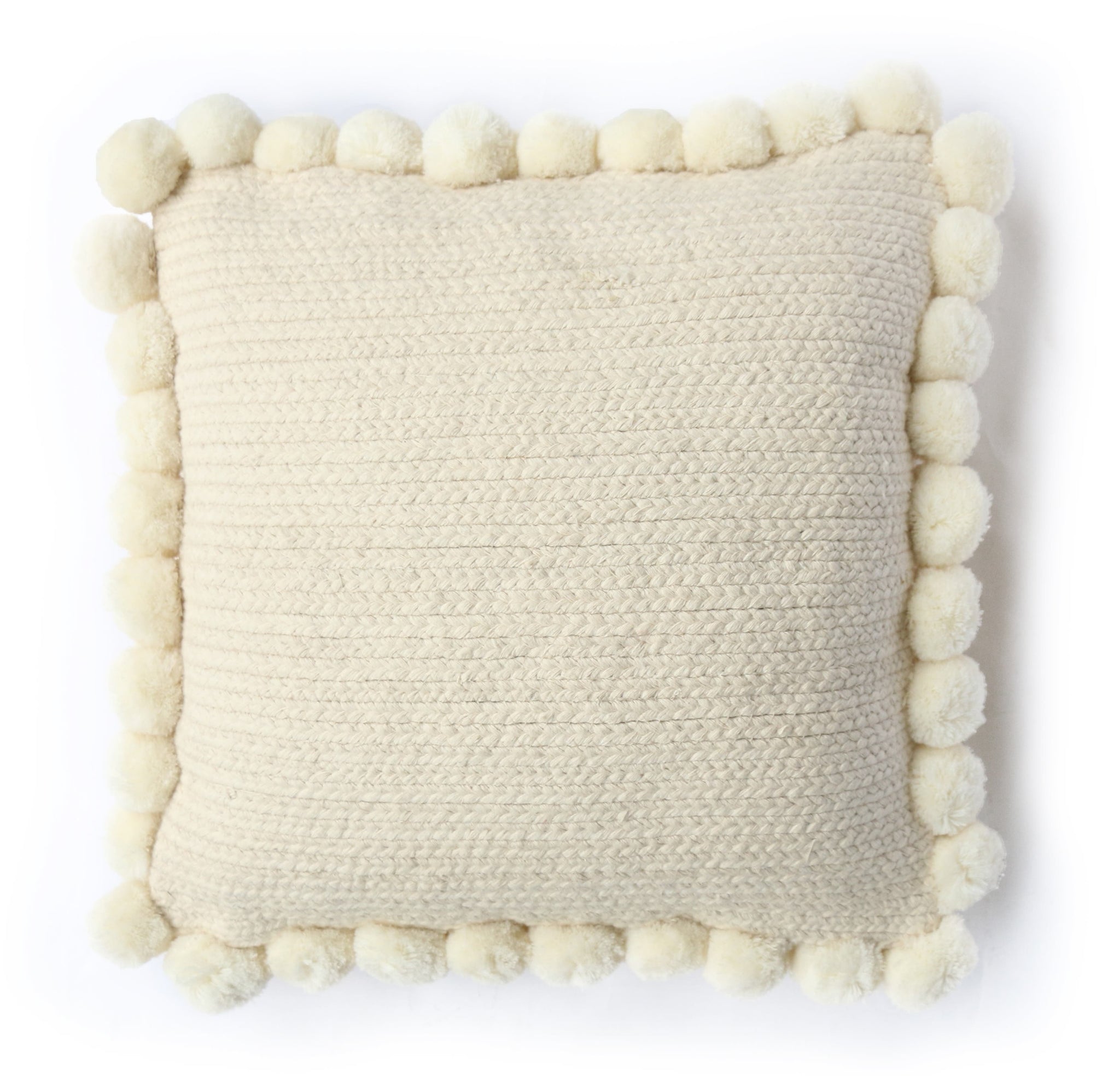 Brighten up your living room decor with this lovely handwoven cushion, featuring a pom-pom design that adds a warm touch to your living room or bedroom.