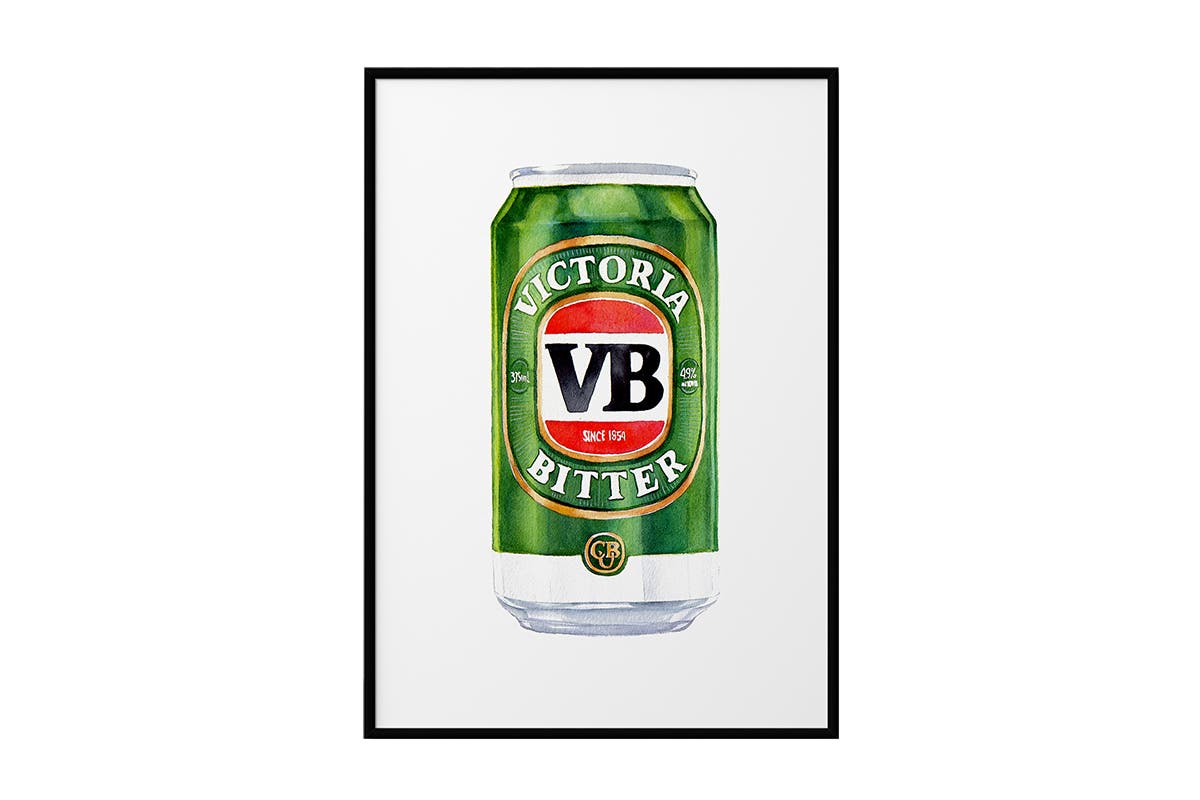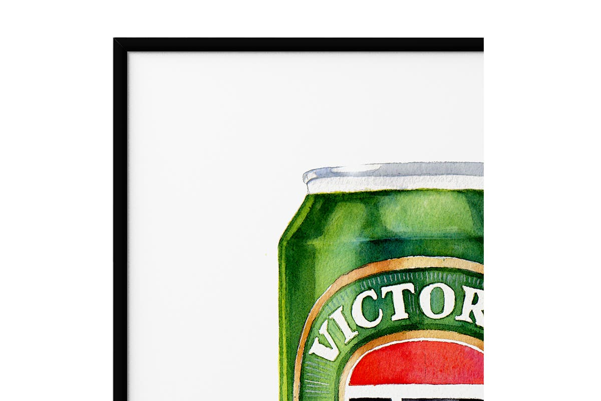The Victoria Bitter Tinnie Beer Painting Gift Wall Art A1 Black Frame makes your space elegant, attractive and authentic. This ready to hang, quality framework is made from pine wood and flat-edged.