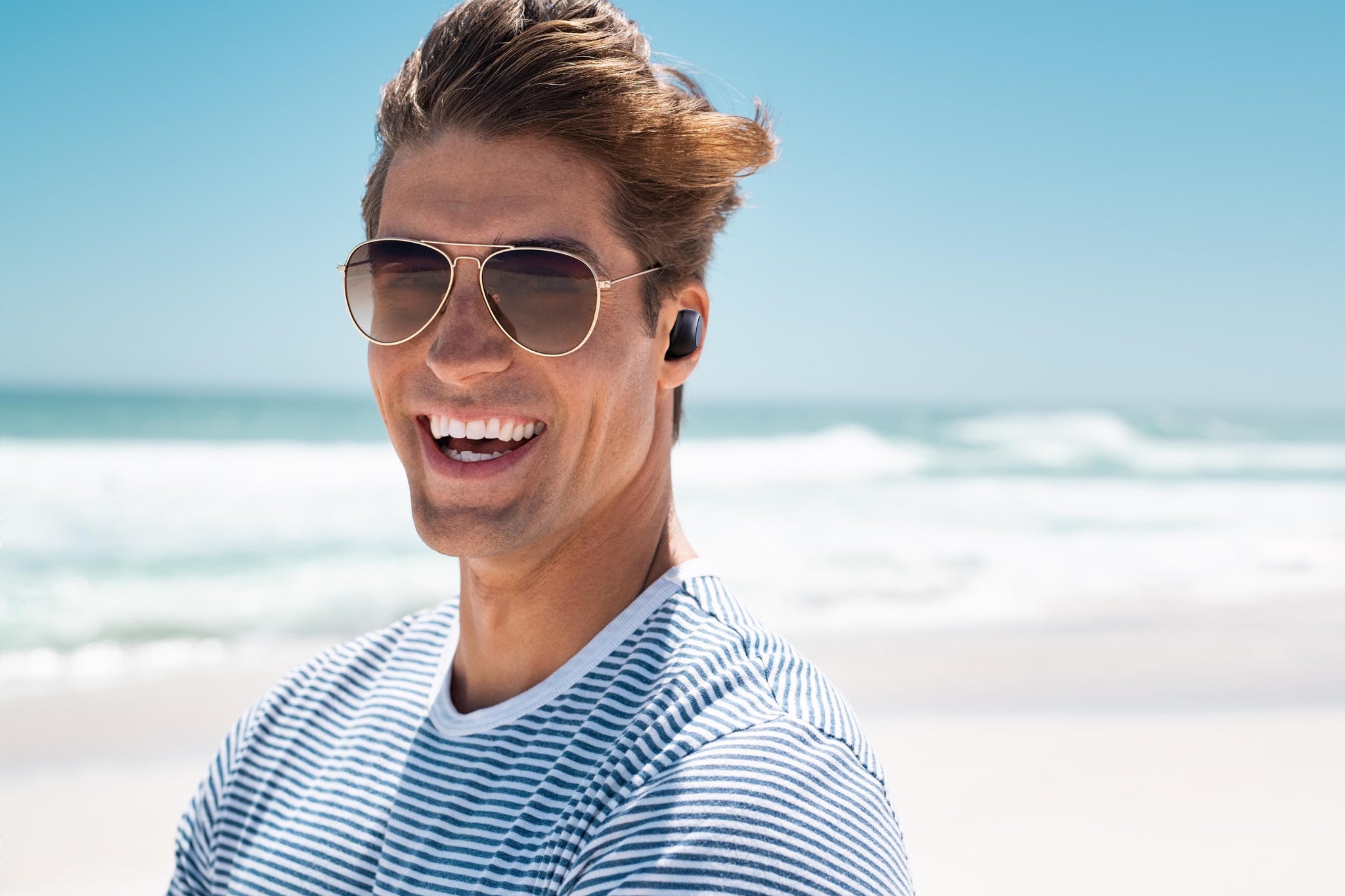 Use the multi-function buttons to accept calls or take and make calls crystal-clear clarity on either earphone using the built-in microphone.