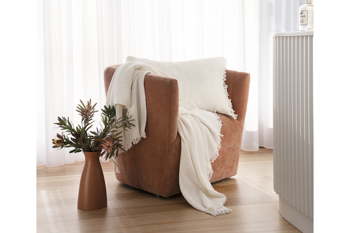 The Bambury Wanda Throw is perfect to lay right across your bed or sofa. The sophisticated pre-washed fabric has been woven together to form a waffle-like texture that will suit the decor of any room.