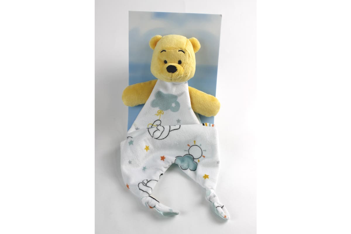 The Bubba Blue Winnie the Pooh Security Blanket is perfect for little hands to grip, cuddle and play with. Each blanket features a cute Winnie the Pooh character head, knotted corners, comforting velour blanket body and soothing satin lining.