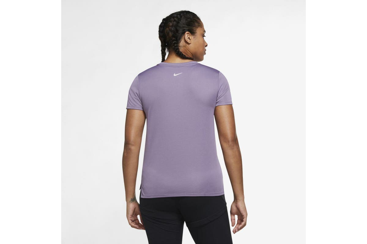 NNEKG Womens Dri FIT Swoosh Run Short Sleeve Top (Amethyst Smoke Reflective Silver Size S)