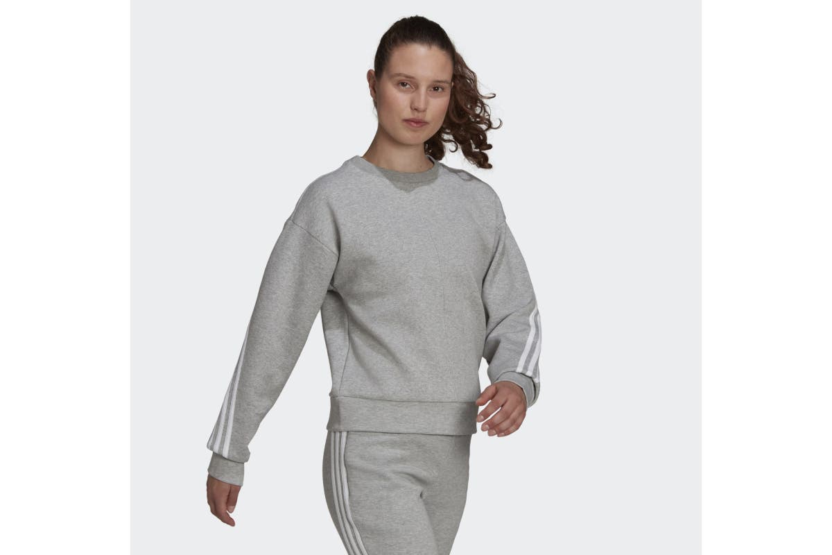 NNEKG Womens Future Icons 3 Stripe Crew Sweatshirt (Medium Grey Heather Size S)