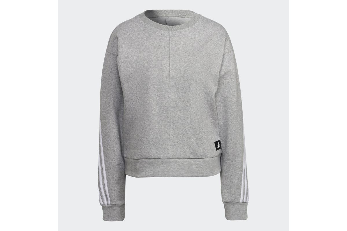Consistency creates classics. Change one small element and the entire piece feels new. The Adidas Women’s Future Icons 3 Stripe Crew sweatshirt puts the switch on convention with 3-Stripes that wrap from back to cuffs.