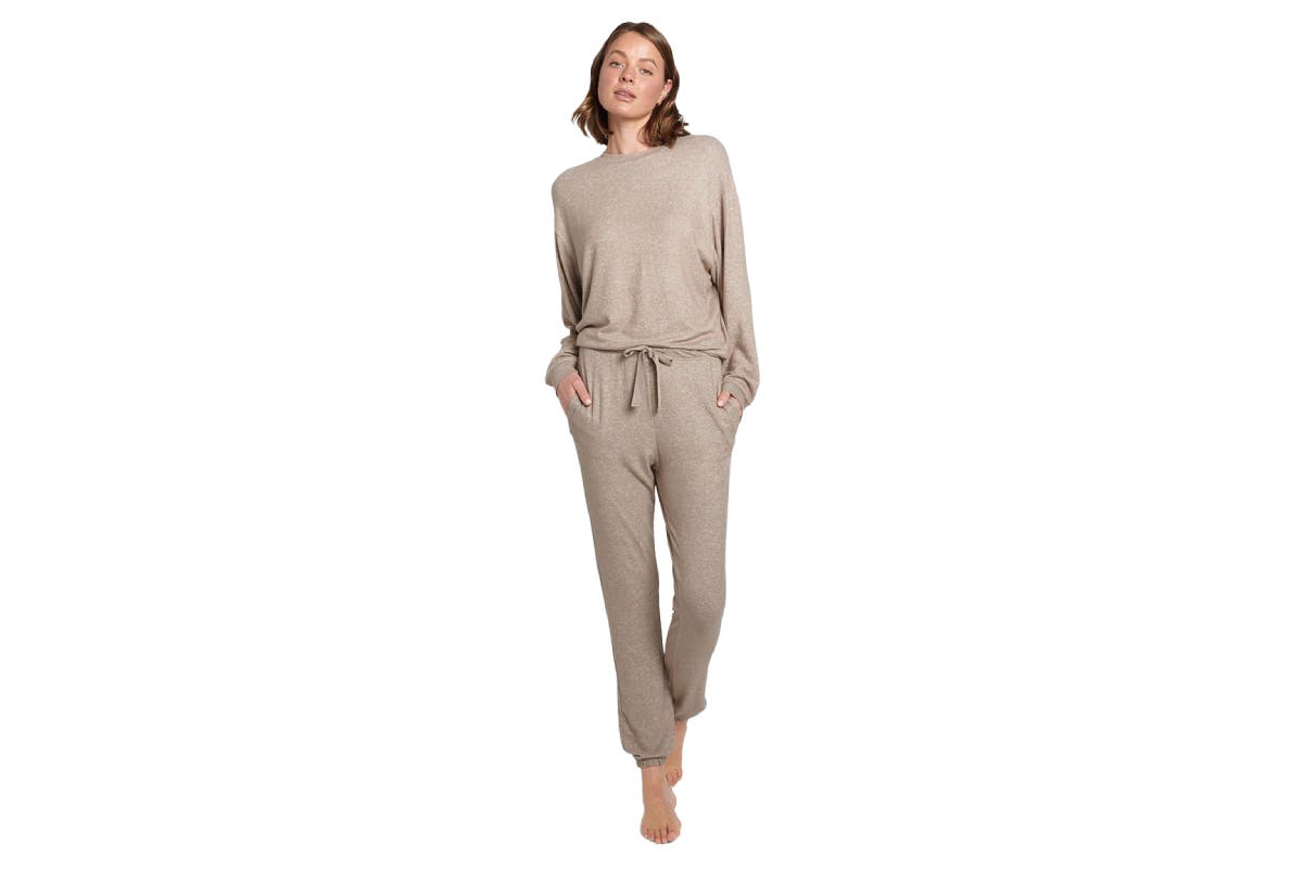 - Soft and stretchy waist with drawcord and cuffed ankles