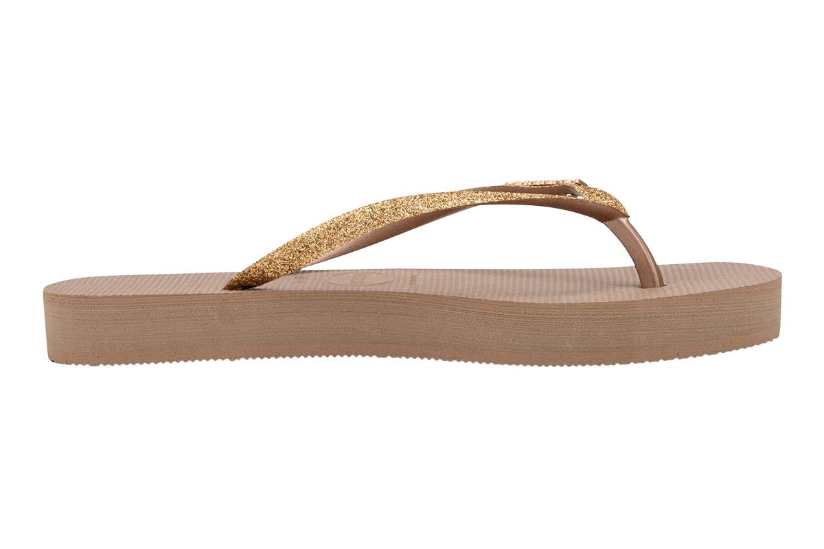 Havaianas Women’s Slim Flatform Shine Thongs stand out – literally – with its straight, elevated sole. In addition to giving you a few centimetres boost without sacrificing comfort, these flip flops will add a modern flair to any look.