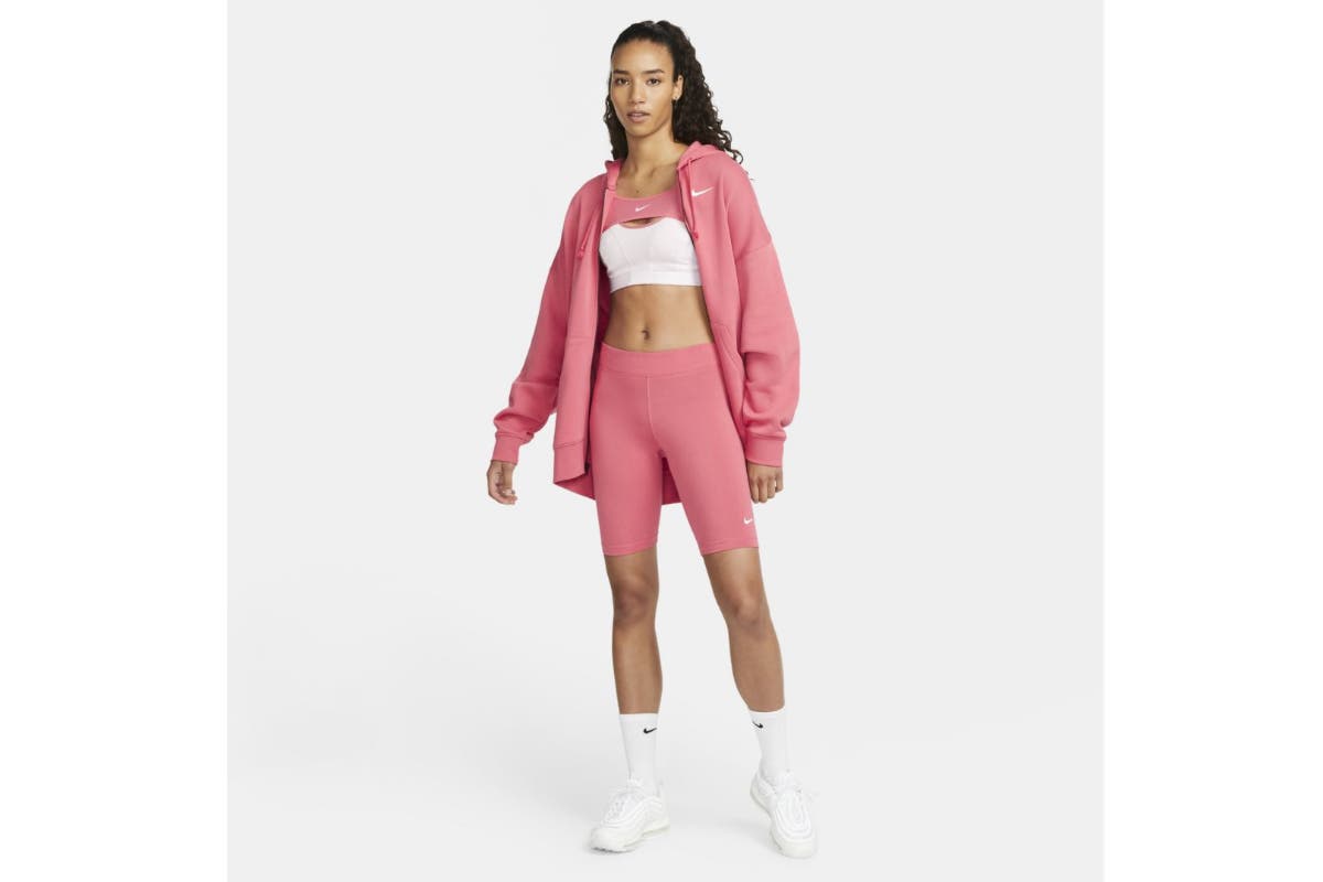 Nike Women’s Nike Sportswear Essential Mid Rise Bike Shorts update a favourite retro style with a mid-rise design and a snug stretch waistband. Stretchy, sweat-wicking fabric and a Swoosh logo make these an easy choice for everyday wear.