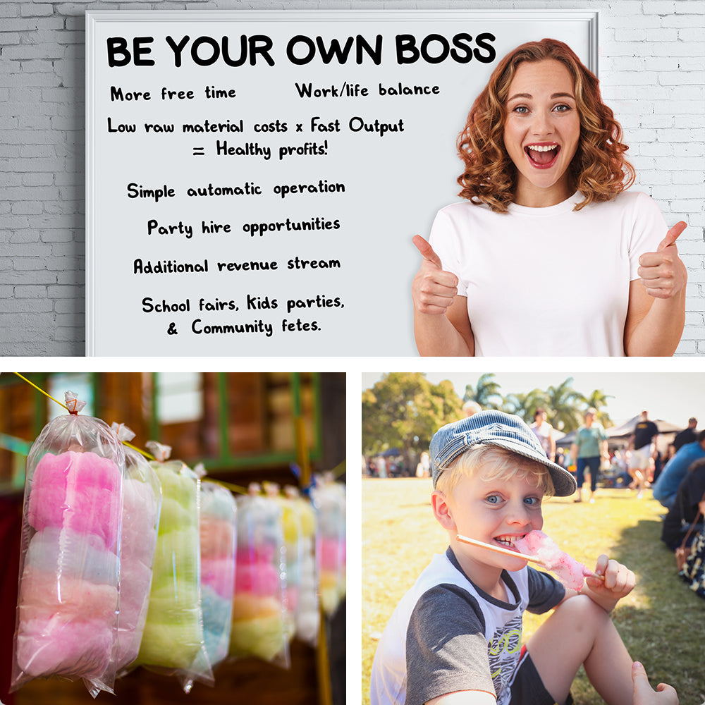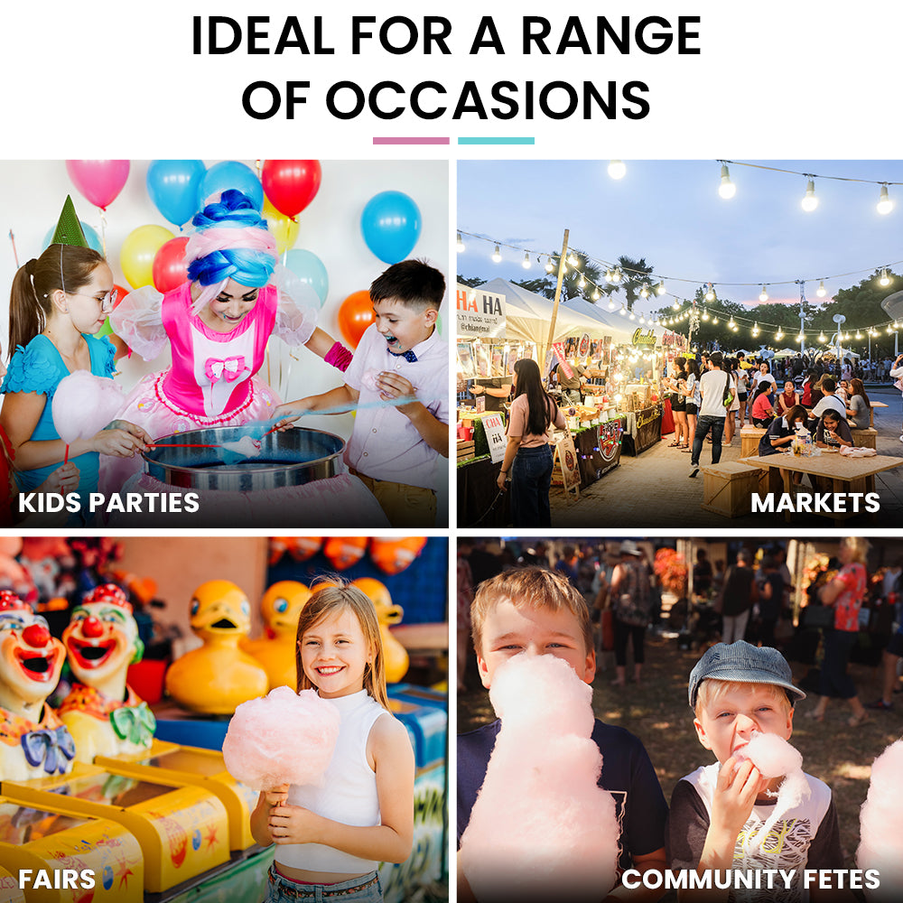 If you’re looking for a lucrative and fun way to increase your income then look no further! This commercial-grade machine features a large 52cm diameter stainless steel bowl and is equipped with a powerful and reliable 1100W motor that delivers whisper-quiet operation and produces up to 6 delicious servings of consistently fluffy floss a minute. This versatile machine gives you the option of using traditional floss sugar or transforming any of your favourite hard candies into fluffy fairy floss!