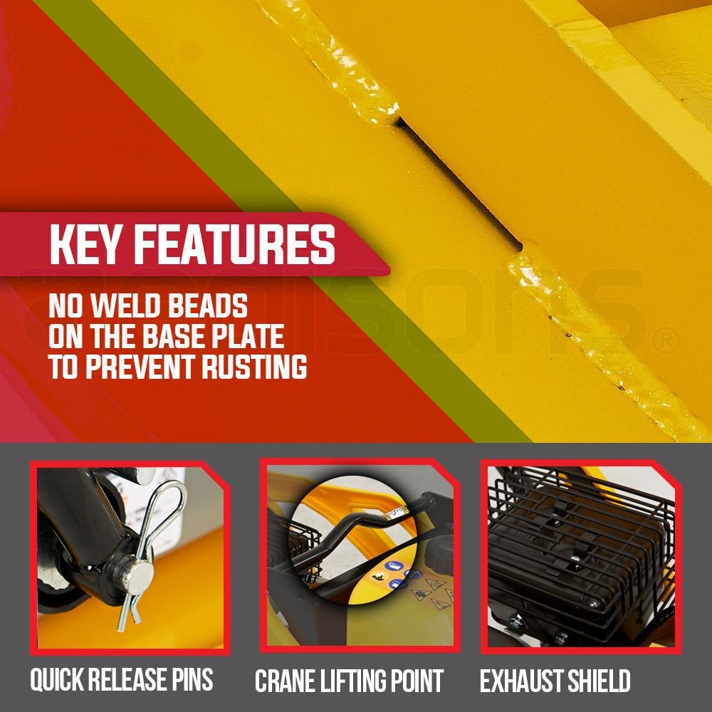 The high-power design combined with a serious 111kg max operational weight and solid one-piece prime strength steel plate guarantees firm-level soil compression. Tapered edges of the base plate offer optimal manoeuvrability, so you'll be able to make light work of compacting sand, soil and gravel in confined spaces.