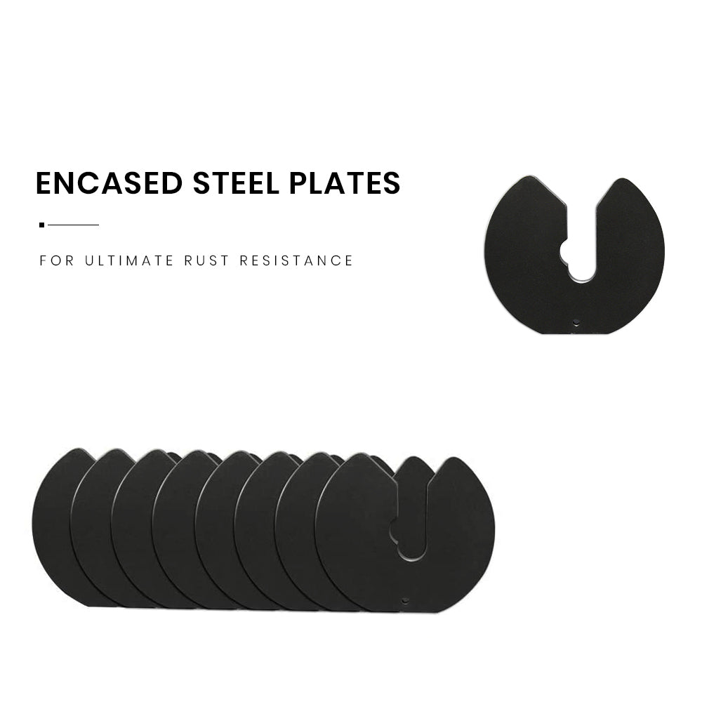 - Weight increments: 2.5kg, 5kg, 7.5kg, 10kg, 12.5kg