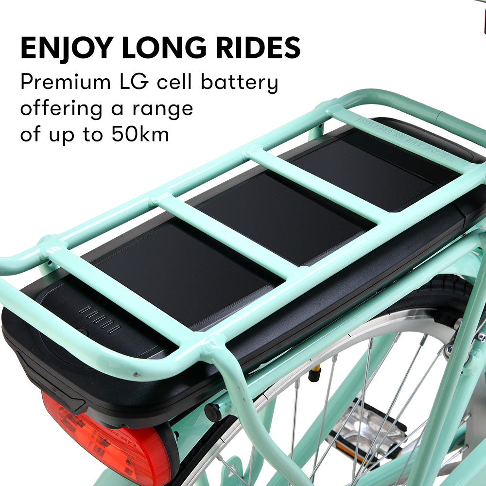 We’ve carefully selected the finest components for the Laneway 5 - a smooth and quiet motor, premium long-range battery with LG cells, alloy frame, Shimano gears, Kenda tyres, Tektro brakes, and LED lights that are wired to the battery.