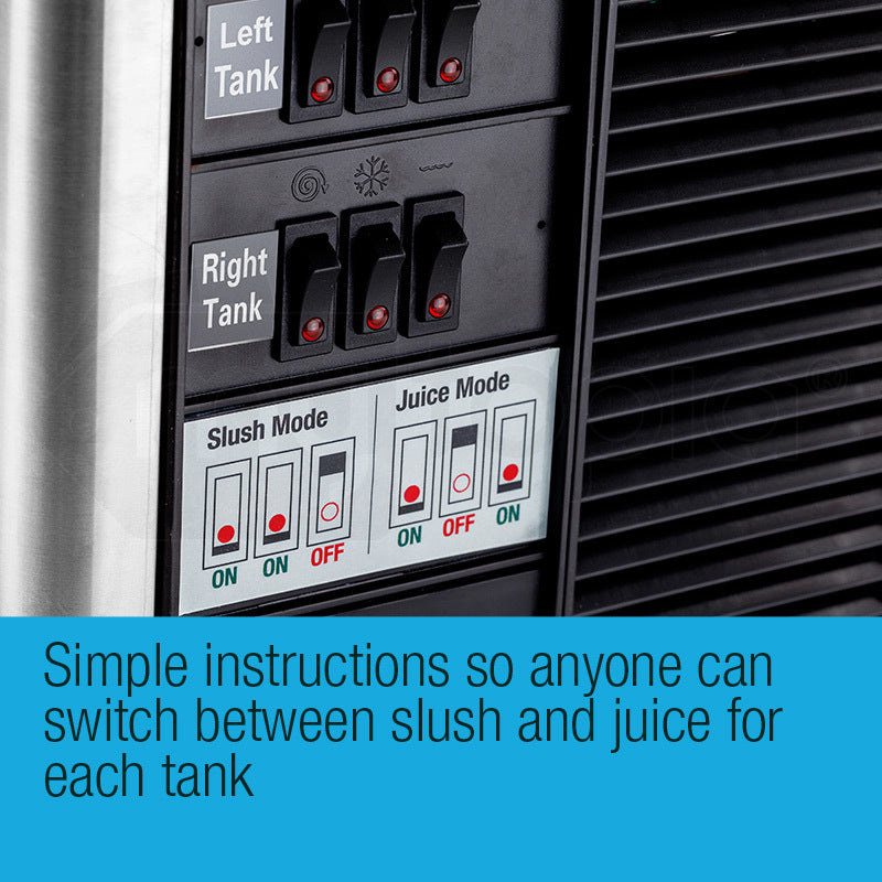 The PolCool Commercial 24L Slushie Machine provides a user-friendly experience, allowing your staff to effortlessly switch between slush and juice while also adjusting the consistency with ease.