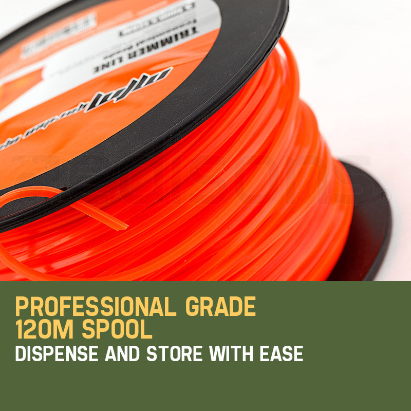 Bright Orange for easy visual accuracy, commercial 3.1mm diameter and universallly suited to most trimmers/brush cutter fixed and bump feed heads accepting of 3mm line.