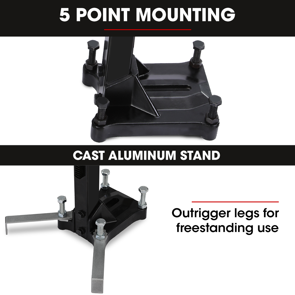 - The vertical stand is mountable to 90 degrees horizontal offering stability and precision