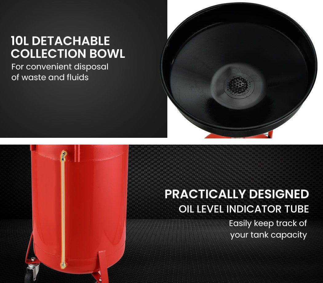 NNEMB 60L Mobile Waste Oil Drainer Tank-Telescopic-for Car Engine-Workshop