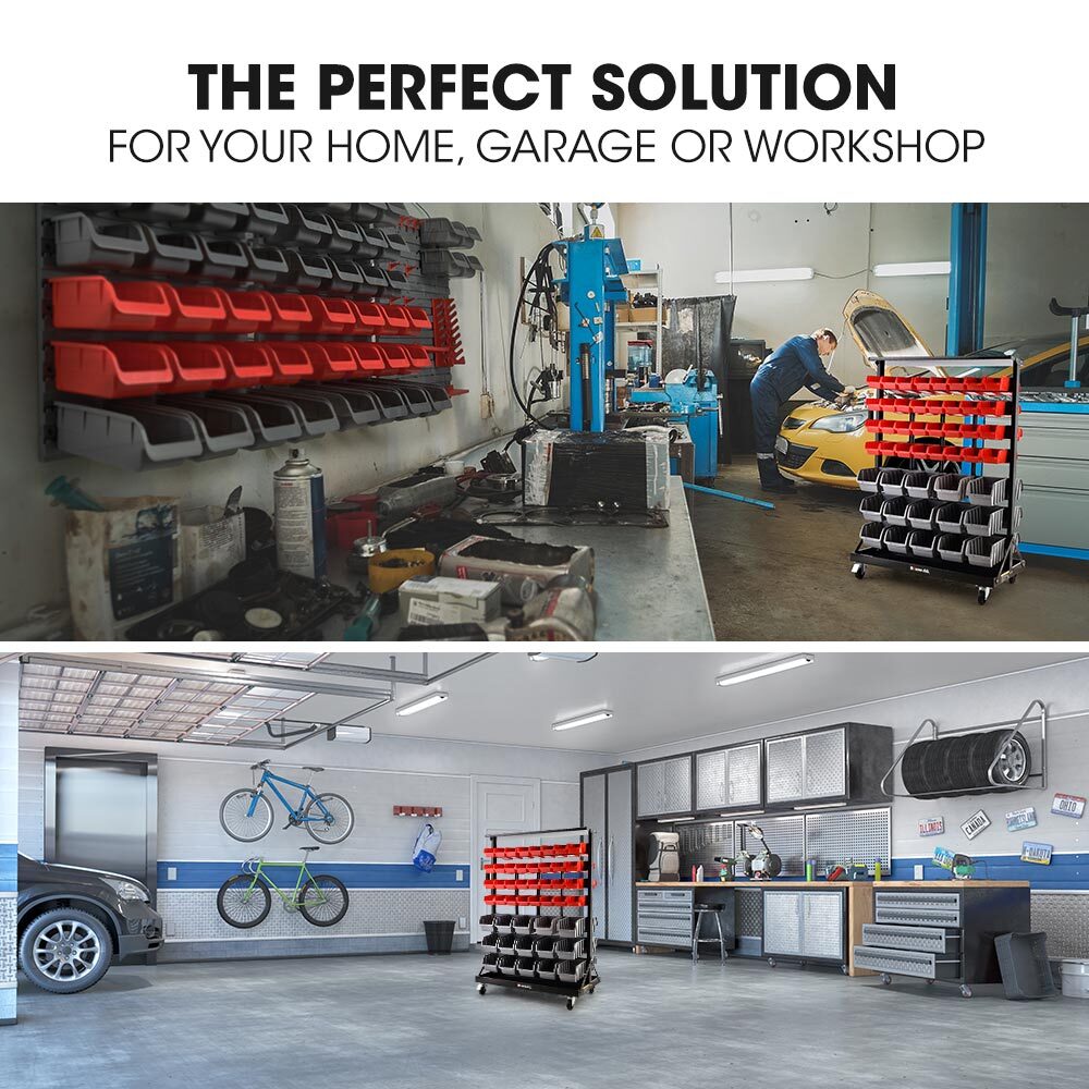 NNEMB 94 Parts Bin Rack Storage System Mobile Double-Sided-Red