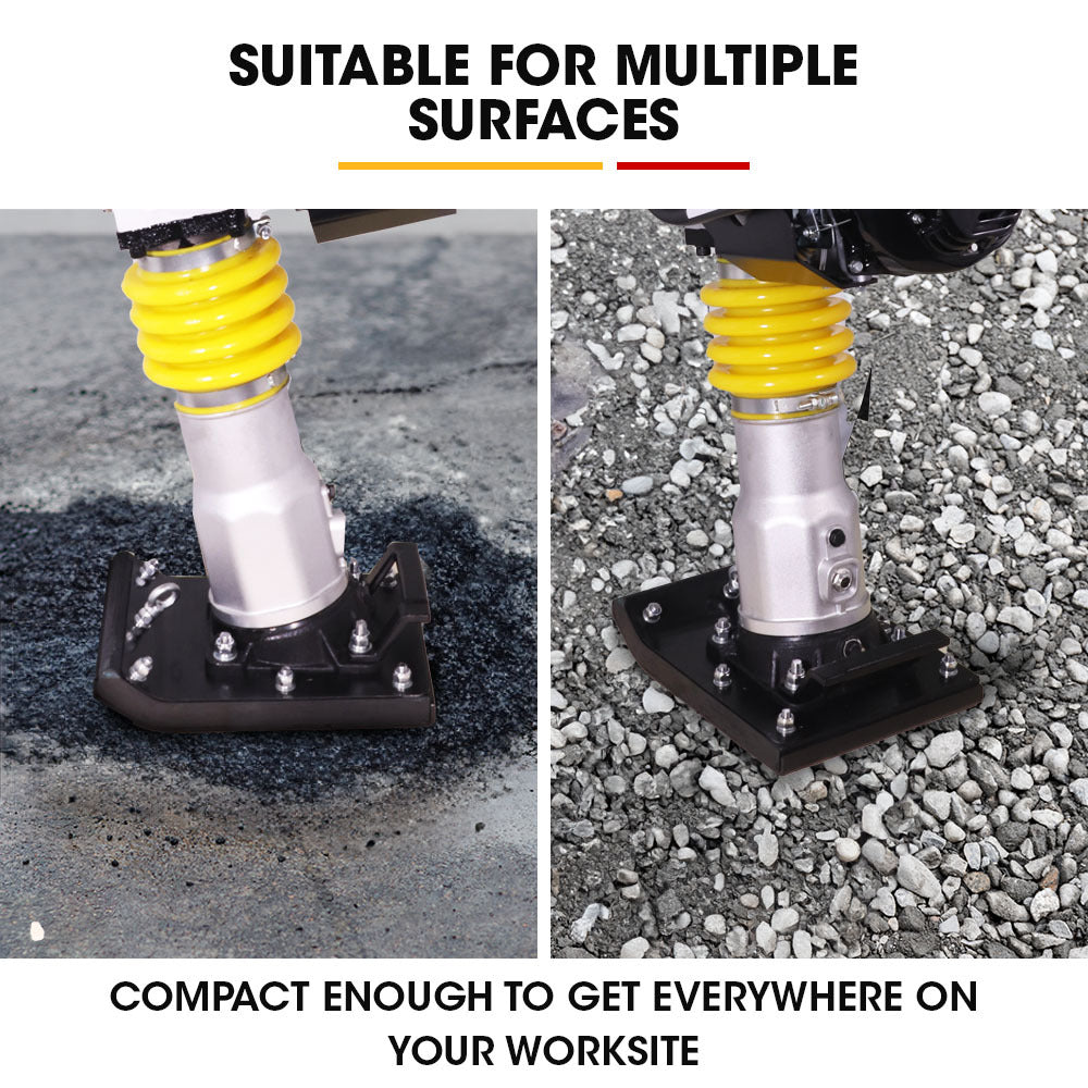This remarkable rammer combines agility, power, and weighing in at just 64kg, it effortlessly leaps through the toughest tasks - packing asphalt, aggregate, sand and soil in trenches, on roads and pathways. It is ideal for tight-to-fit areas as well as general-purpose use.