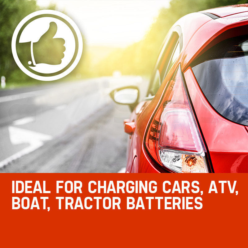 - Ideal for charging cars, ATV, boat, tractor and truck batteries