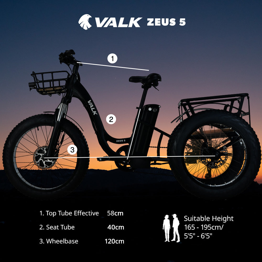 With a seriously powerful 500 Watt 48V motor, suspension and massive 4 inch 26 inch diameter CST fat tyres, there are few limits to where you can explore on the Valk Zeus Electric Fat Tyre Tricycle!