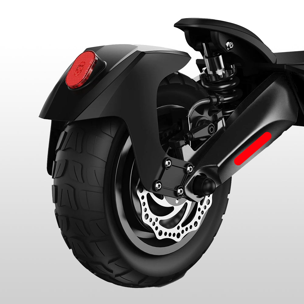 Twin heavy-duty mono-shock front and rear swing arms soak up the bumps. The motocross inspired suspension gives a more comfortable ride and provides sure footed handling on and off-road and across all urban terrain. The system also protects the motor from excessive shock and vibration which means less wear and tear and maximum motor longevity.