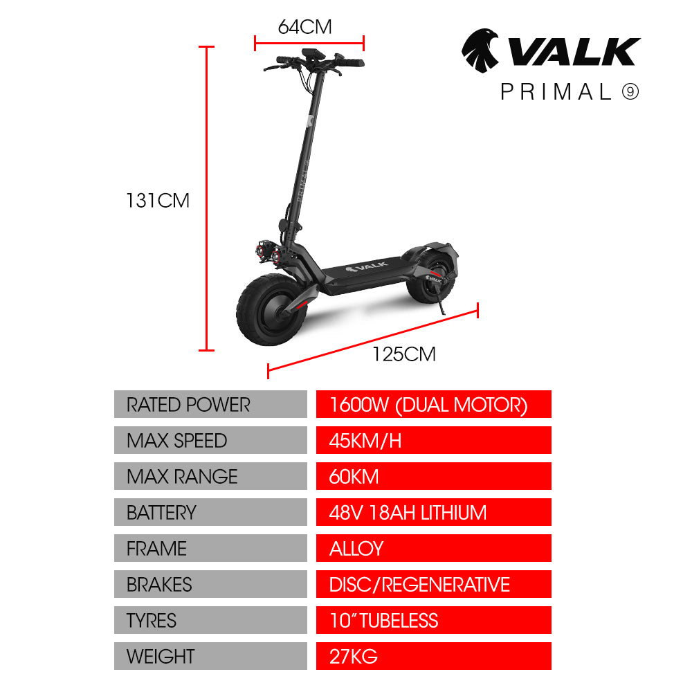 Introducing the new Top-of-the-Range Valk Primal 9 Electric Scooter. Precision crafted with high quality materials and premium features. This Valk e-scooter is a synergy of advanced technology and quality components that set it apart.