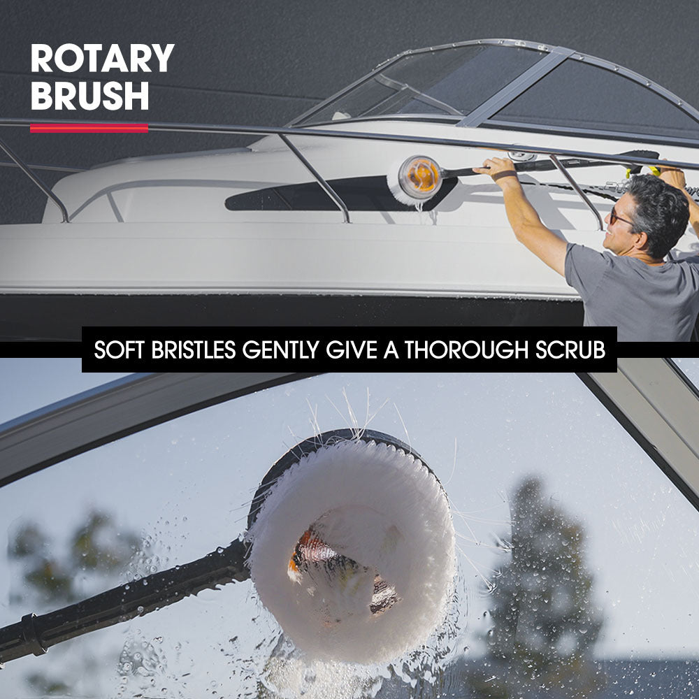 Attaching the detergent bottle and the detergent nozzle allows you to easily apply suds when cleaning cars while the rotary brush head attachment provides extra scrubbing power. The surface cleaner head is ideal for decks, paths and driveways. With a Vari-Nozzle, a Detergent Nozzle and a Turbo head, this High Pressure Washer offers versatile cleaning options to suit any task!